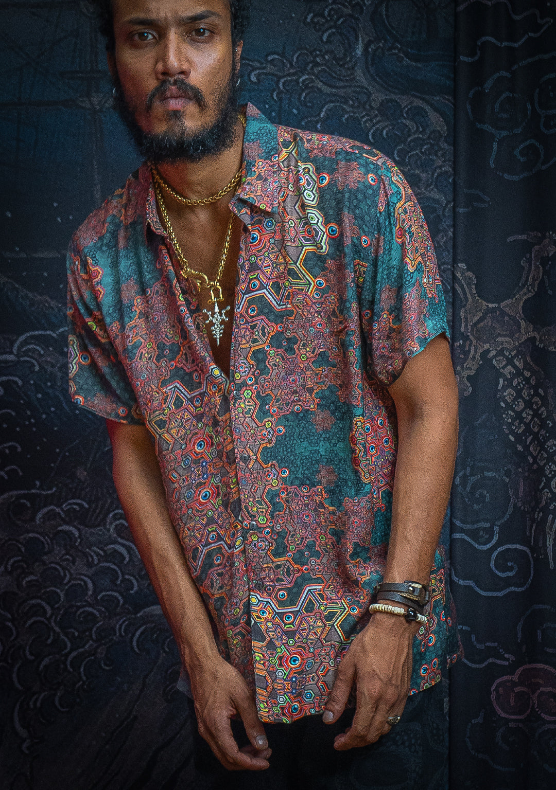 Shirt Men Half Sleeves / Viscose AOP – DRAGONS Sangoma