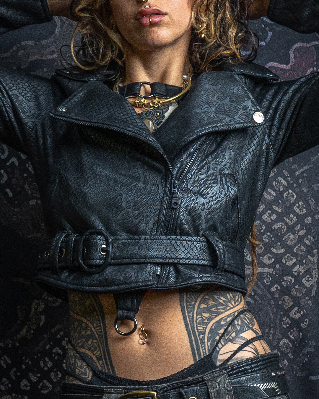Neotokyo Punk Crop Jacket Woman / French Teri Fake Leather Patch – PSYCHEDELIKA GALACTIKA
