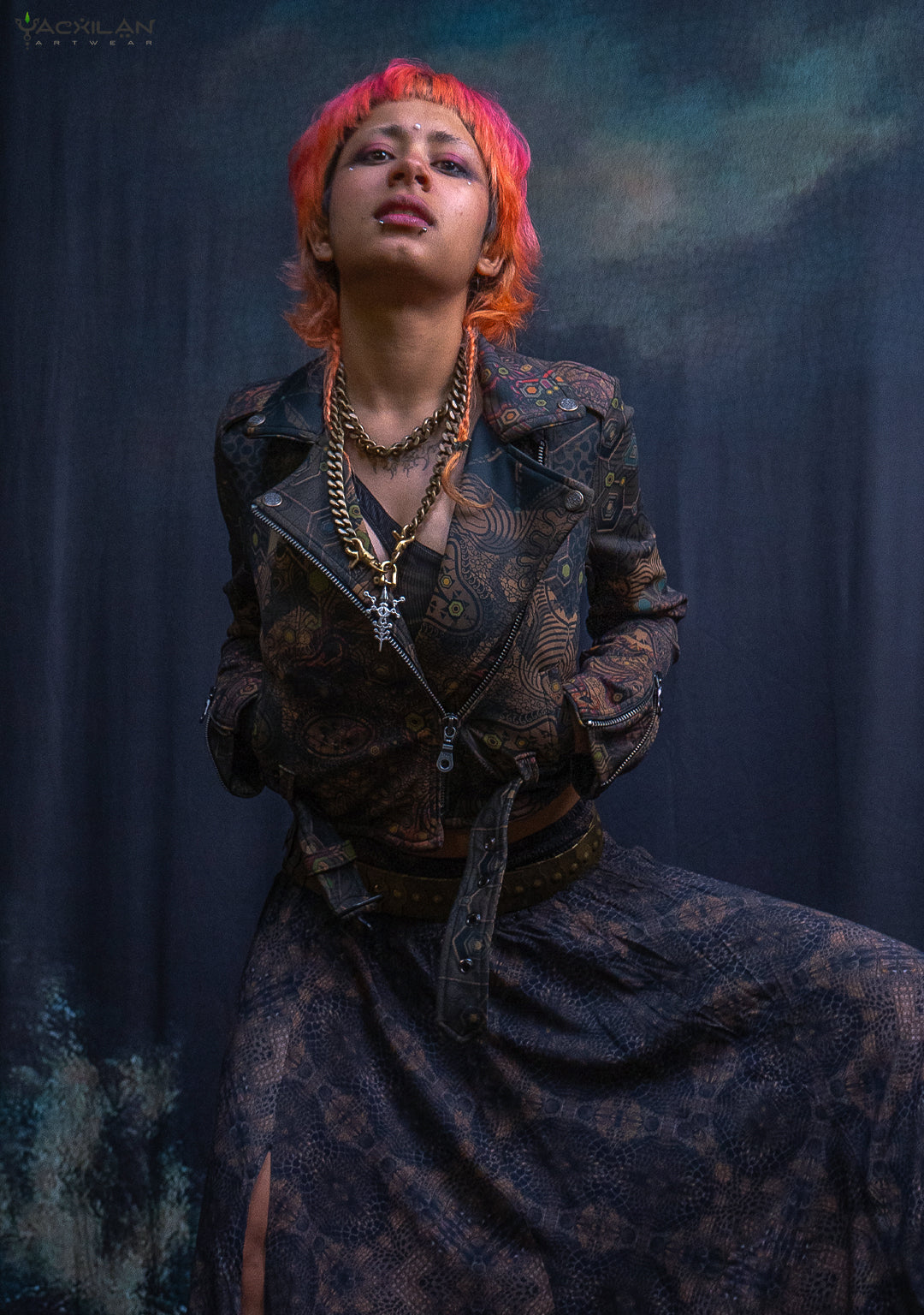 Jacket Woman / Fake Leather Silver Surfer - Copper PSYCHEDELIKA - Yacxilan ArtwearJacket Woman / Fake Leather Silver Surfer - Copper PSYCHEDELIKA - Yacxilan Artwear