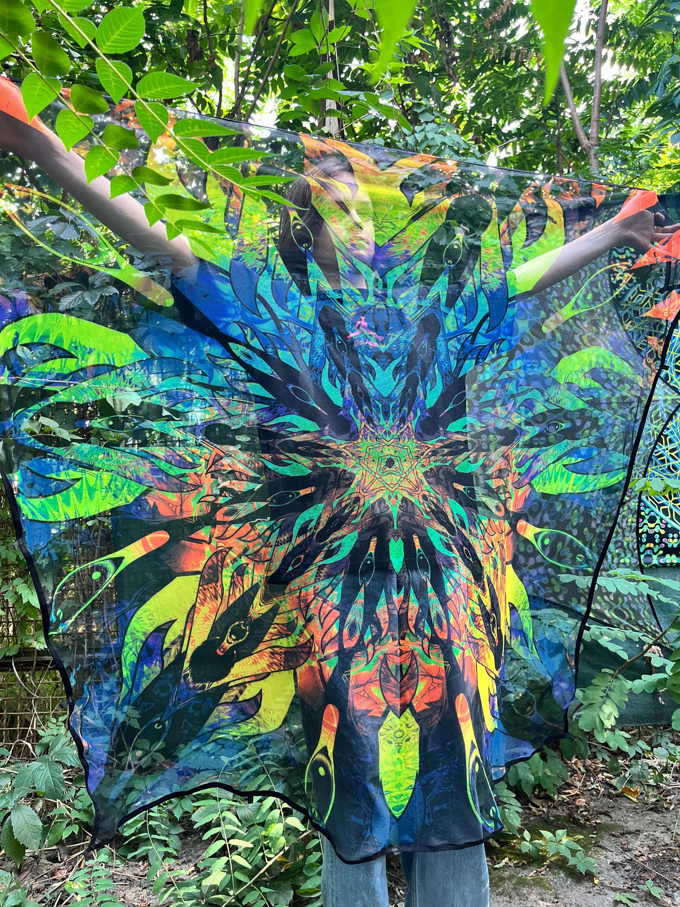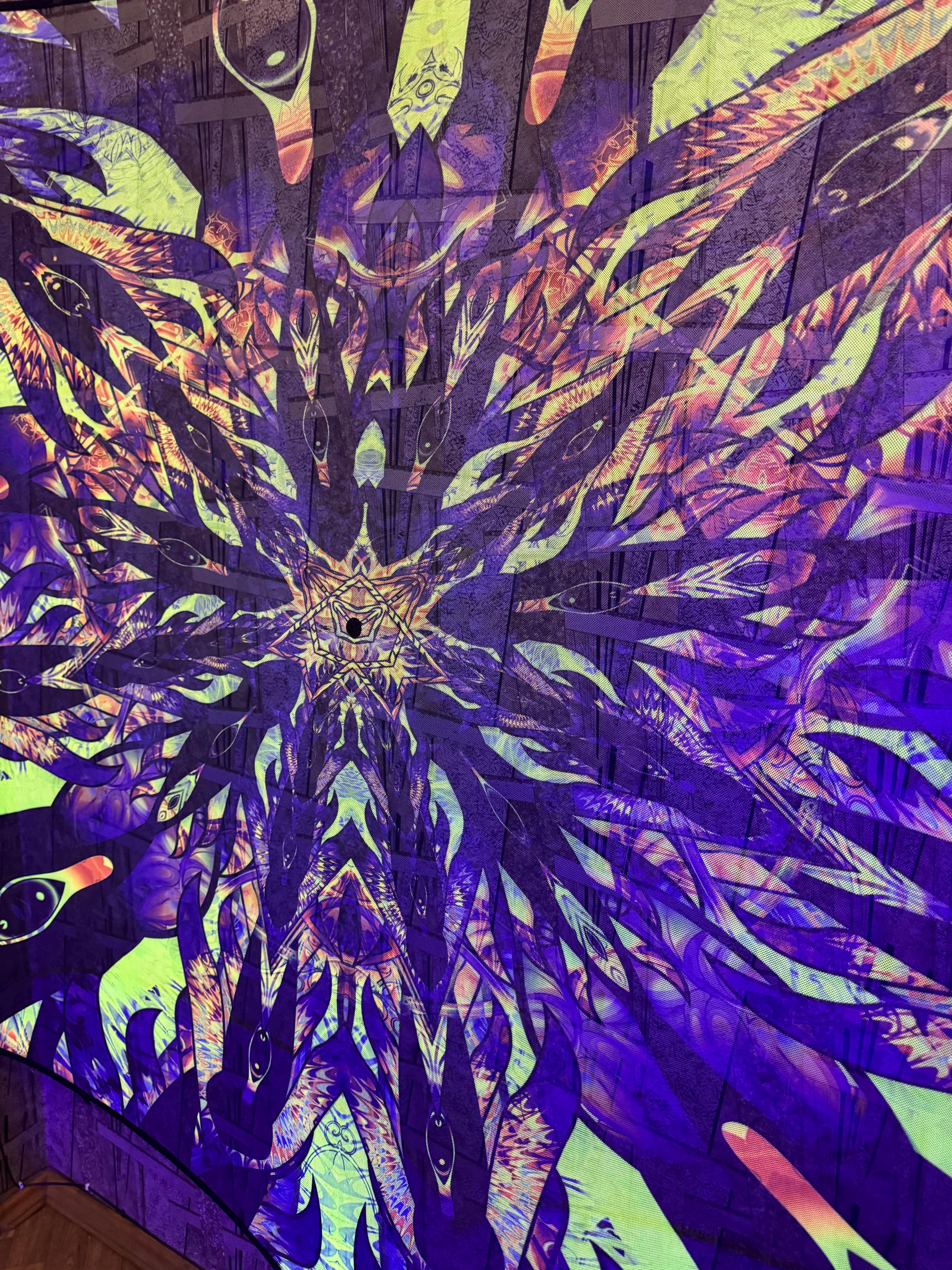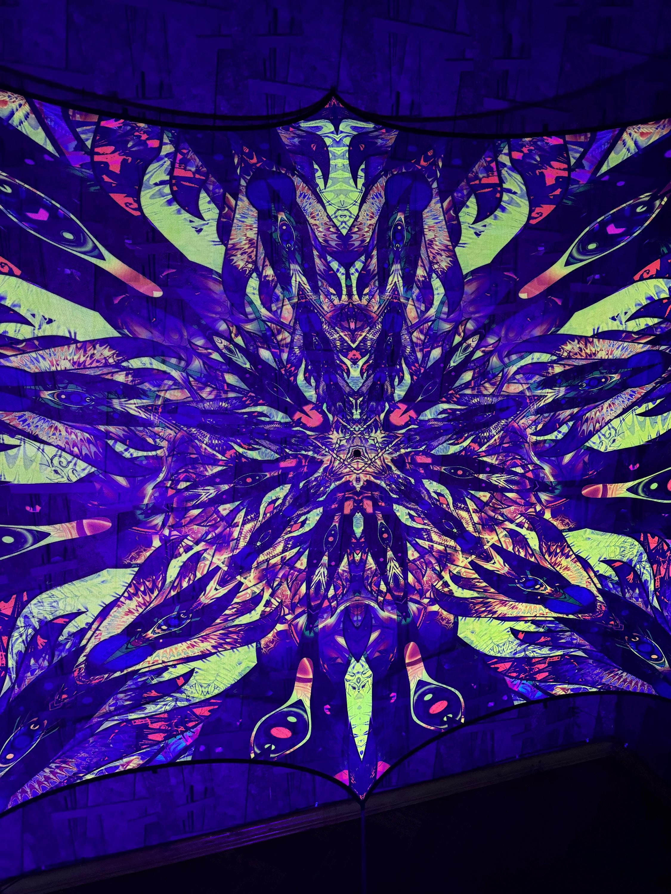1 Layer Blacklight UV Tapestry: Installations with 3D Mesh Fabric Trippy Print Decor for Aesthetic Psychedelic Shade Rainbow Artwork