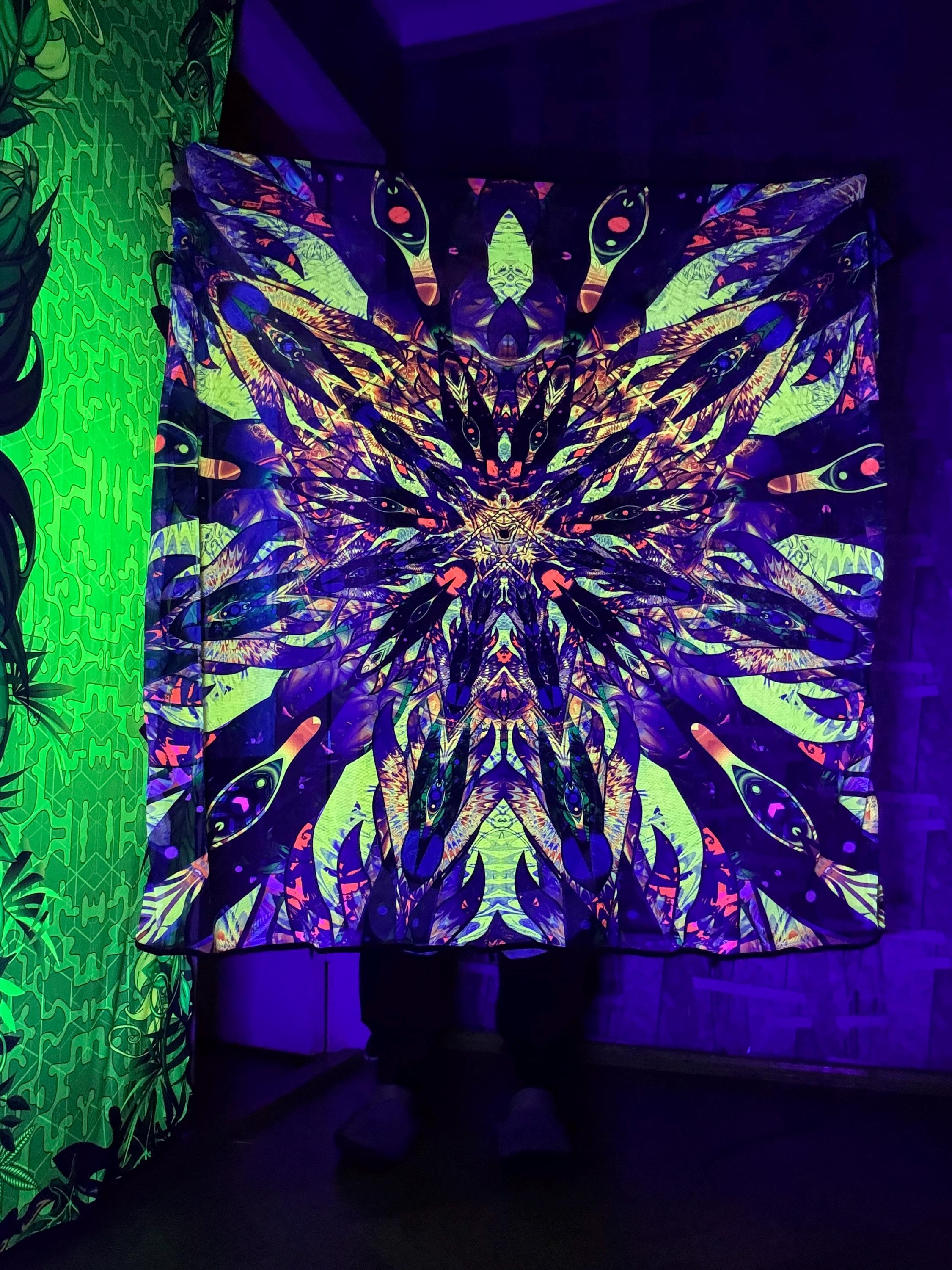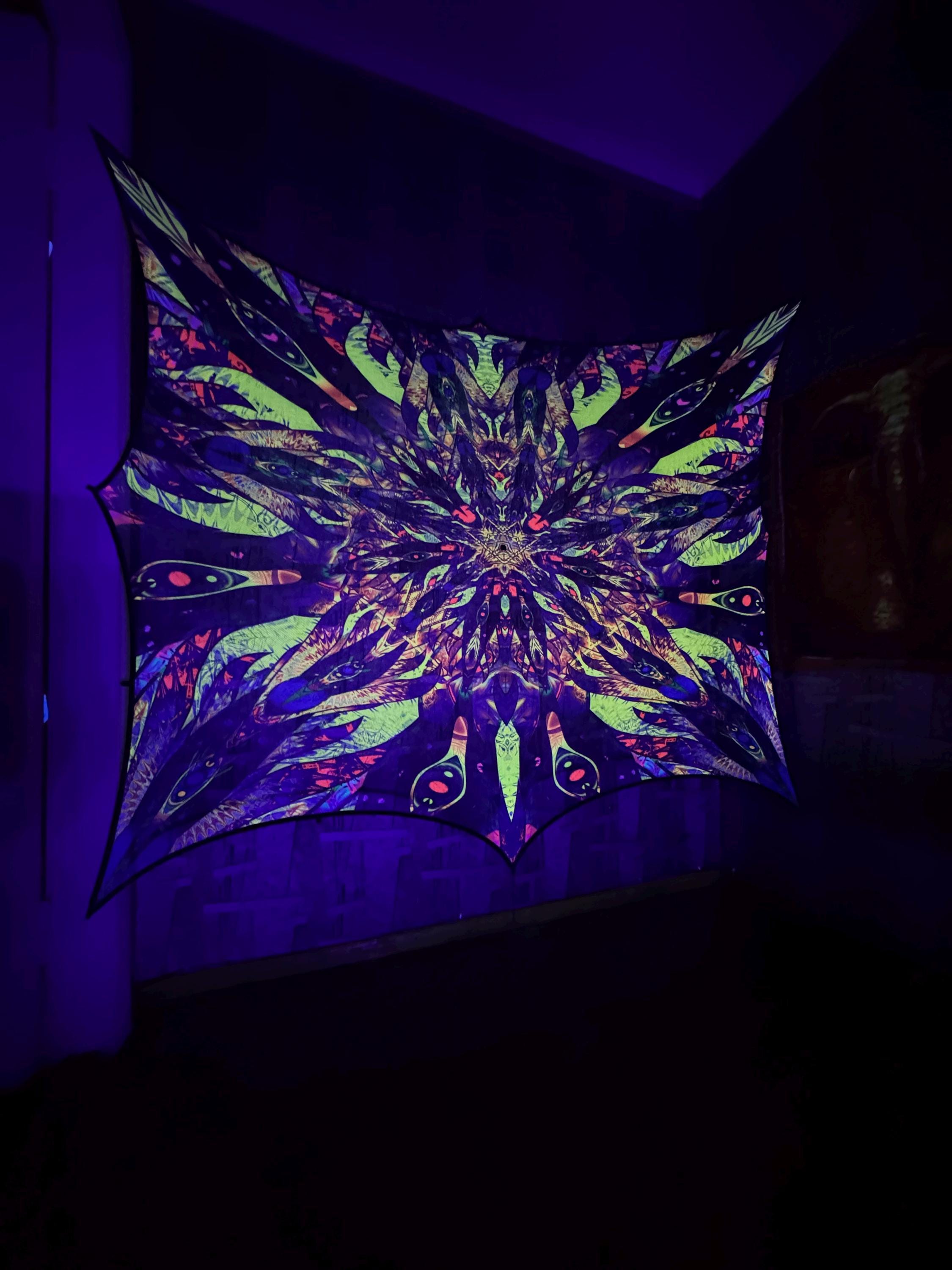 We offer Neon sign art, sacred geometry art, black light tapestry, funky wall art, large wall hanging, trippy poster, printable art, wall tapestry, party decorations, tapestry aesthetic, trippy art, space poster, printed mesh fabric, Blacklight, UV reactive Tapestry, etc.