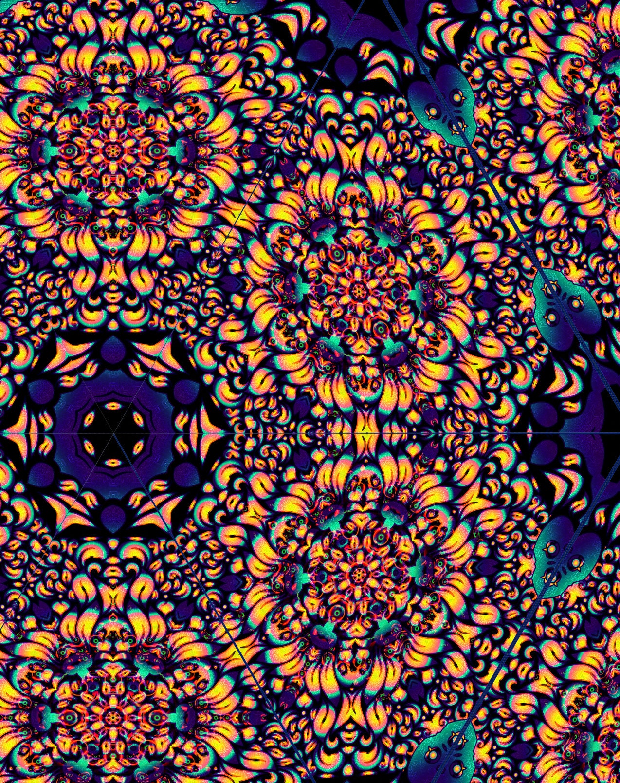 UV-Reactive Psychedelic Canopy Stage Design "Flower Mandala" – Ceiling Decoration, UV Festival canopy installation!