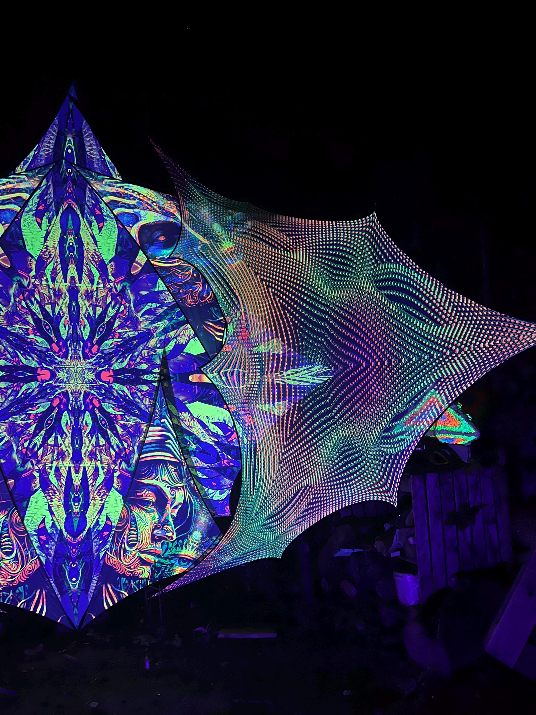 UV psychedelic decor perfect for parties and festivals decor, uv reactive dj stage decor or DJ Booth, art installation, psytrance decor, outdoor party