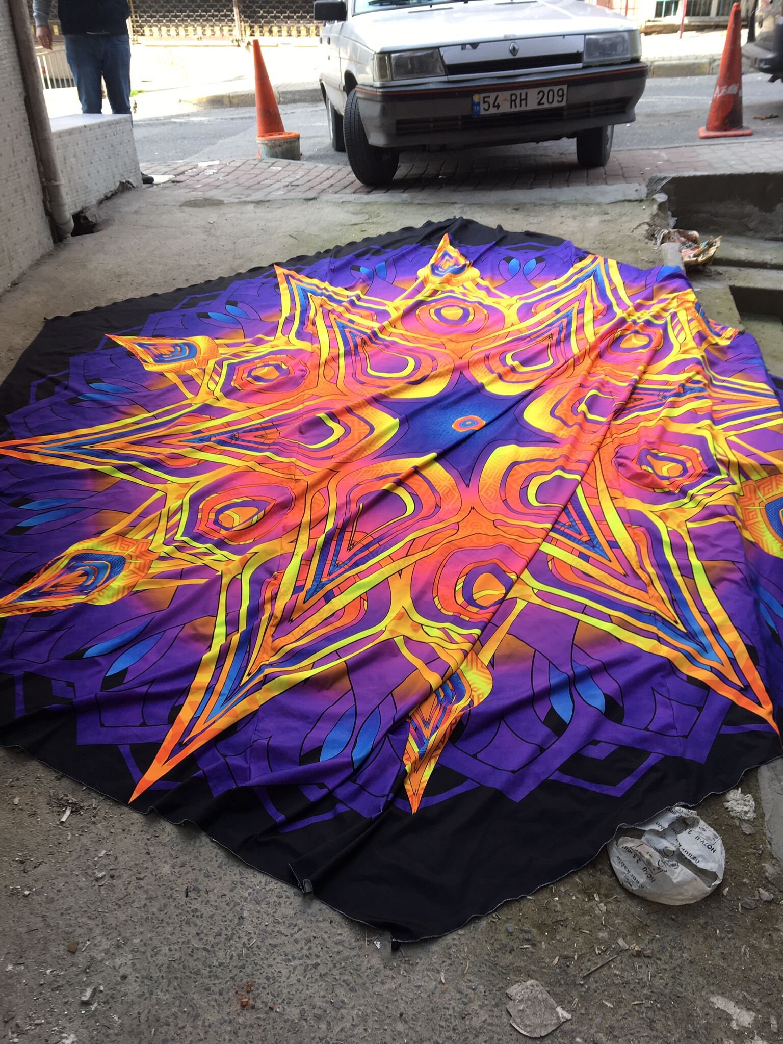 8.6×8.6 m UV Ceiling Decor – HipnoStar – Psychedelic Festival Glow canopy tent Trippy installation art Lycra Blacklight PsyTrance festival