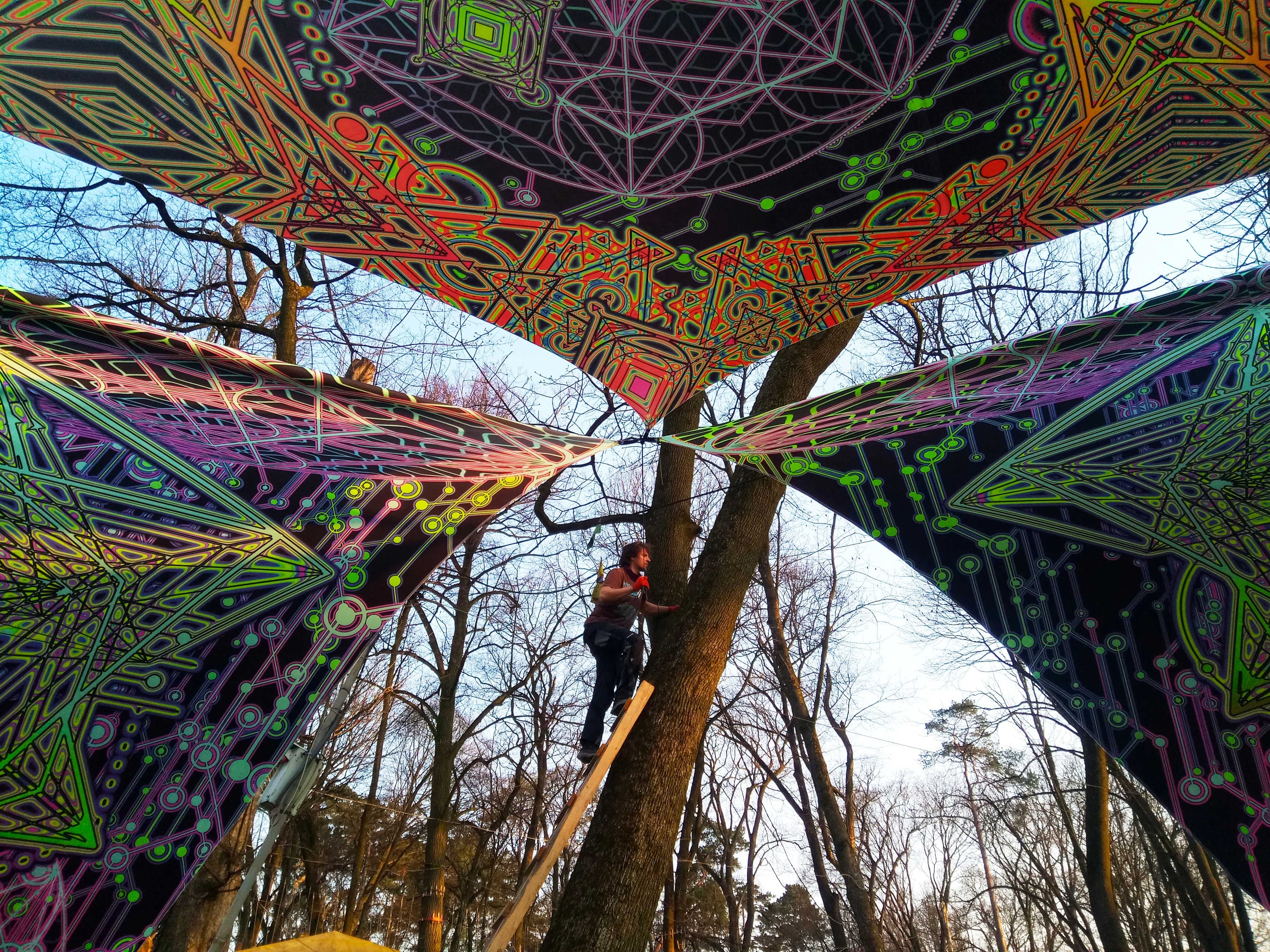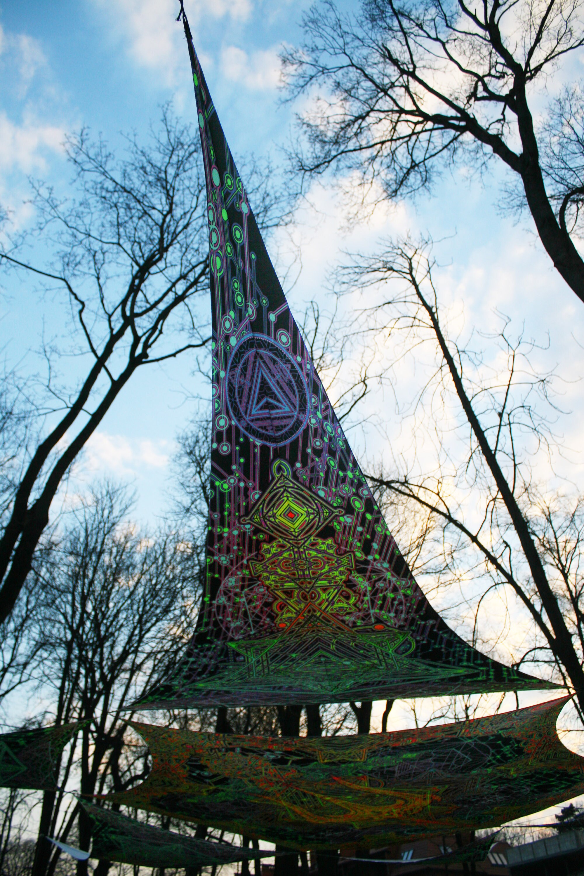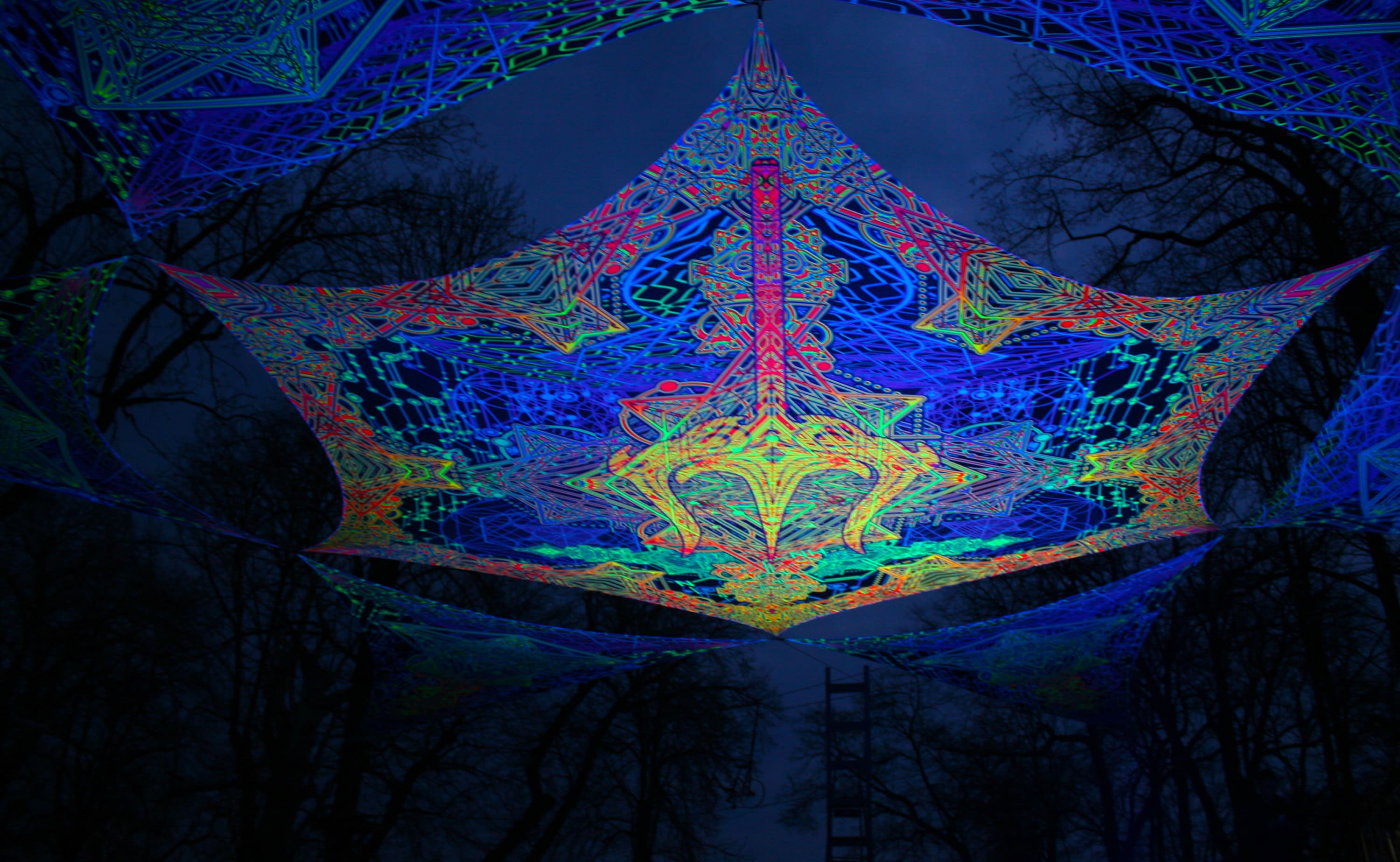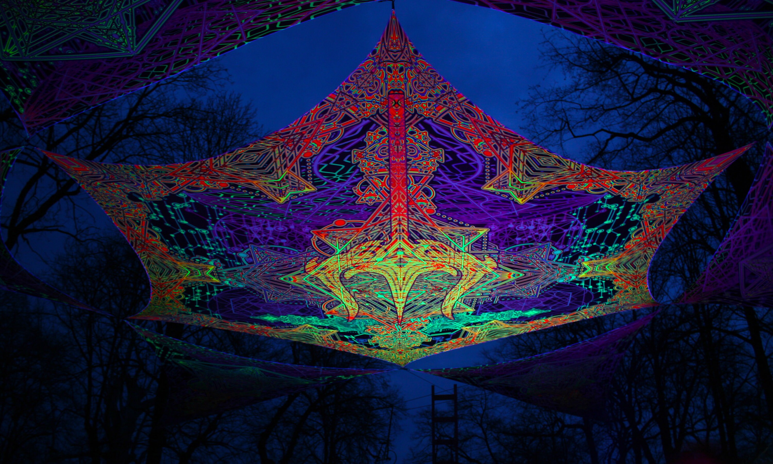 Perfect for parties and festivals decorations, uv-reactive dj stage or DJ Booth, art installation, outdoor party decor Psytrance.