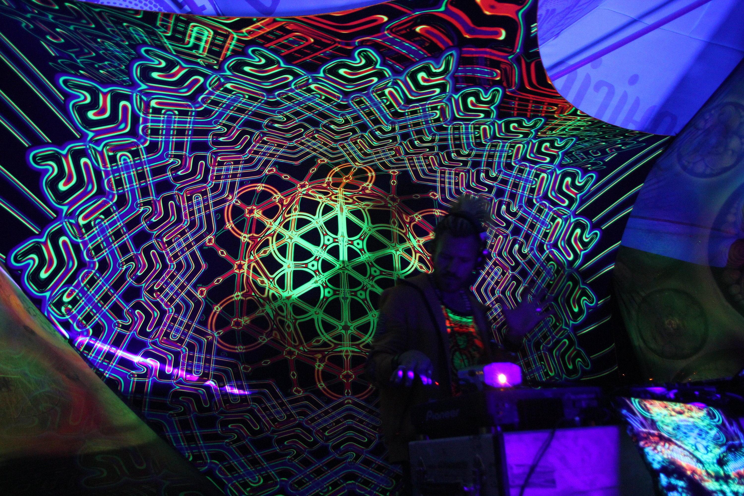 Perfect for parties and festivals decorations, uv-reactive dj stage or DJ Booth, art installation, outdoor party decor Psytrance.