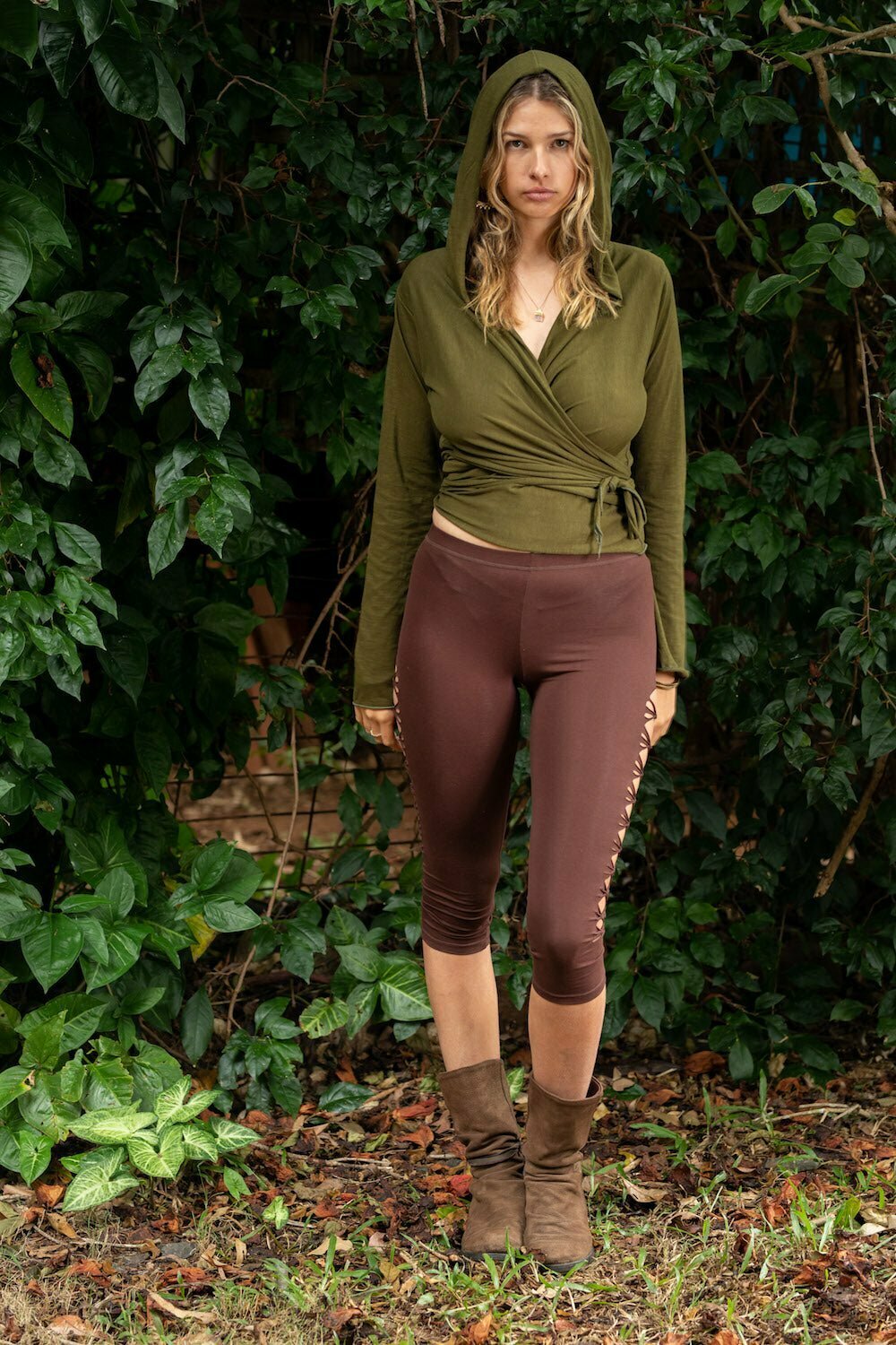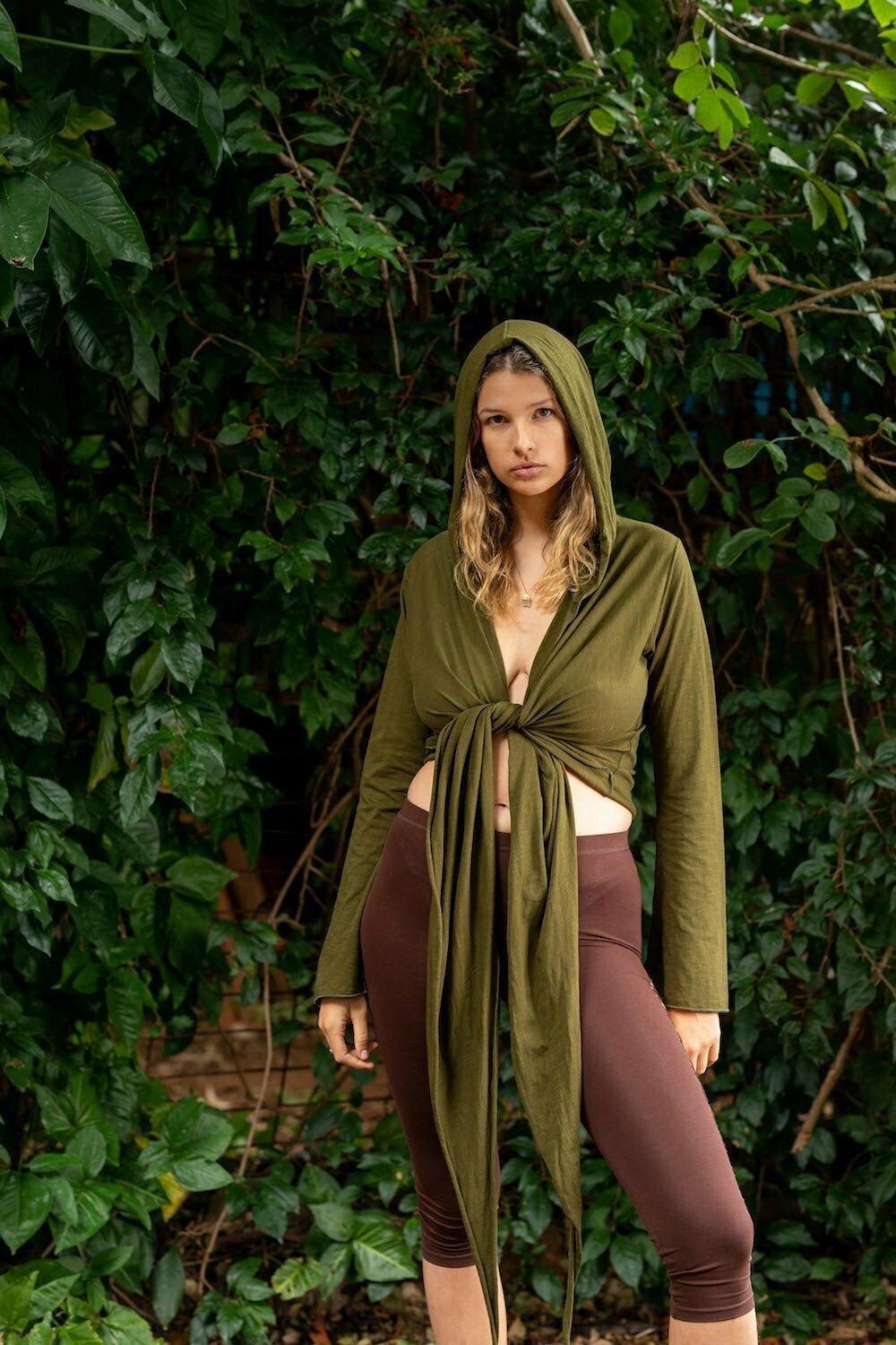 What a fun pixie top! The classic wrap accentuates the waist and balances this nicely with its bell sleeves. Featuring a lovely hood, evoking mystery and intrigue. Easily worn in many different ways as shown. Hand made with so much love, this top is suitable for any occasion, perfect to wear in the evening or during the day, at festivals, for a ceremony, the beach or wandering the city.