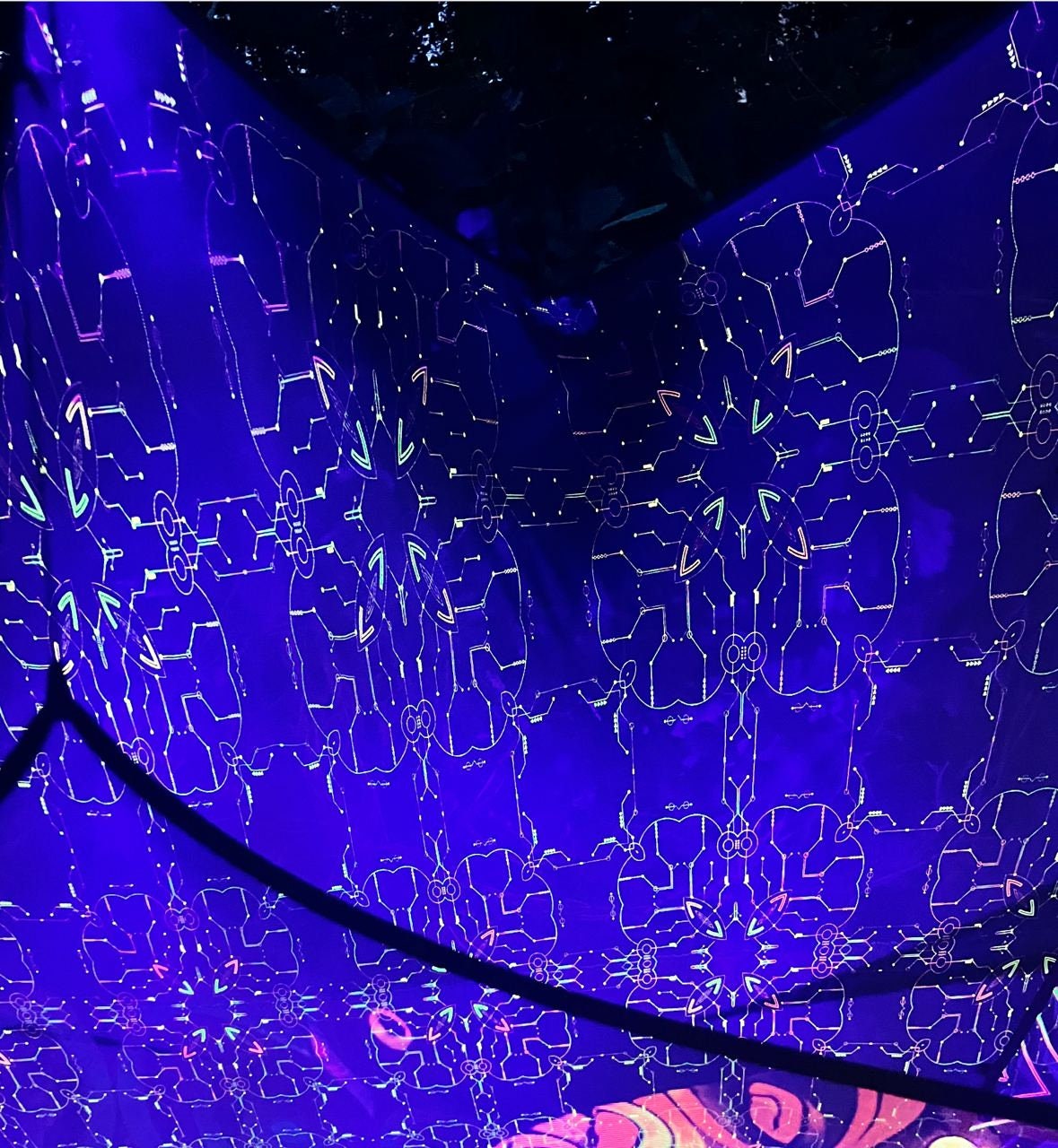 Extra large Mesh Blacklight Tapestry, Fractal art Fabric Backdrop, Aesthetic 3D Installation, Neon Sign Art, Glow Art