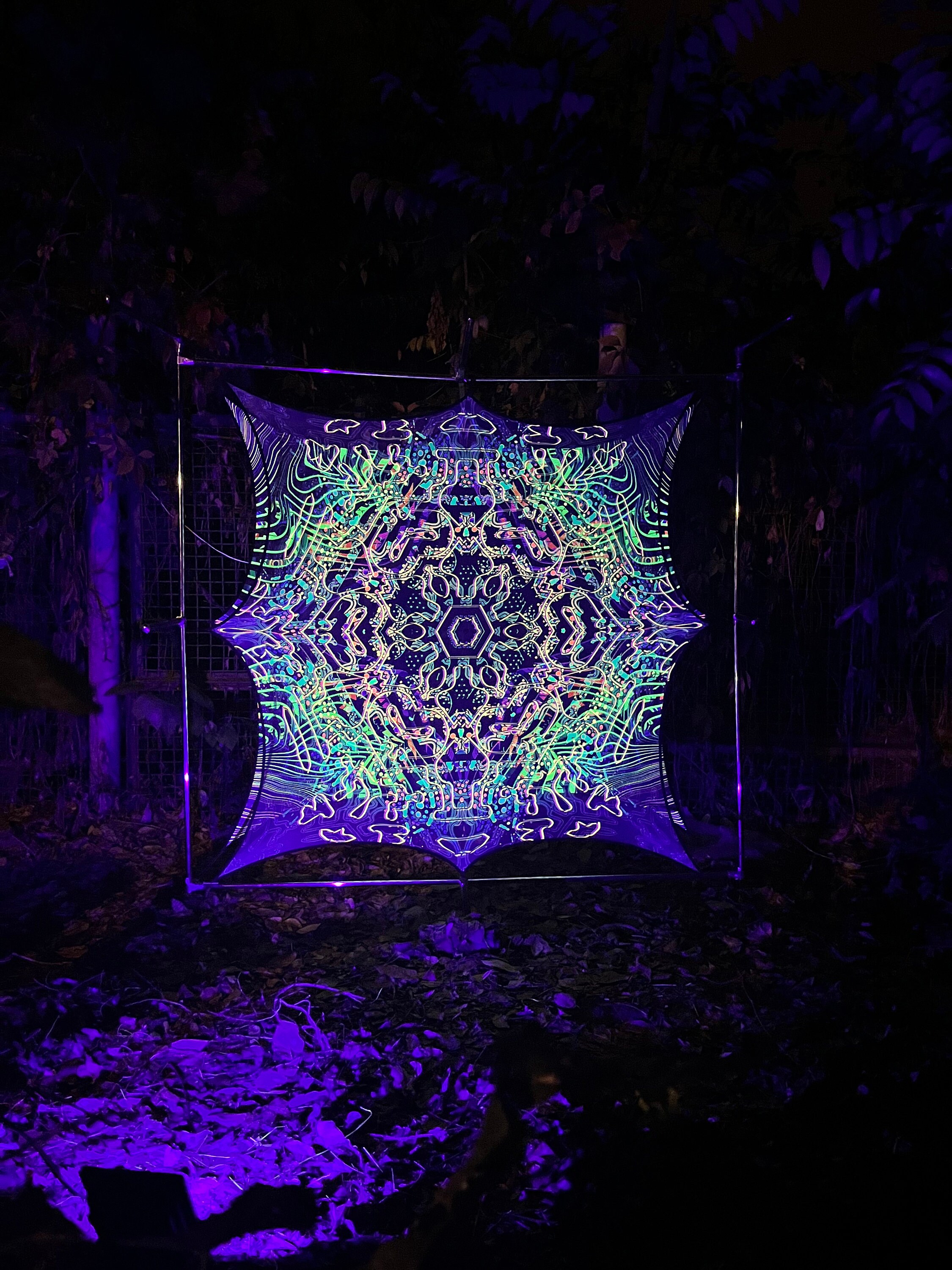 Flower 1 Layer Mesh Print + Portal Mesh print 3D Installation, Blacklight Spiritual Tapestry fractal art Fabric Poster Aesthetic