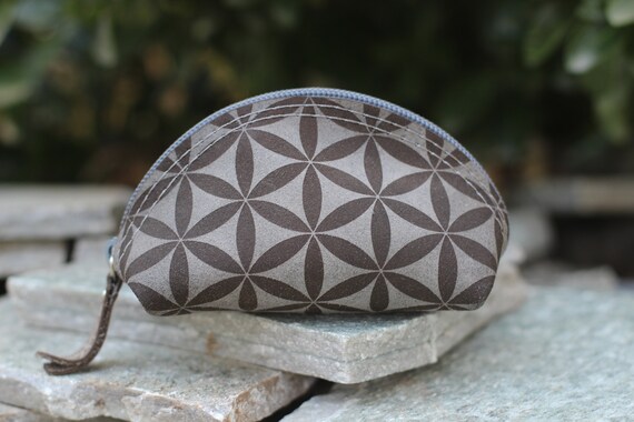 Flower of Life Leather Coin Purse: Sacred Geometry Zipper Pouch
