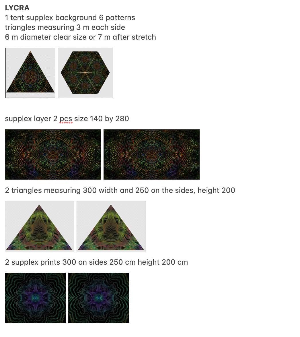 ‣ 1 tent with a supplex background, featuring 6 patterns: