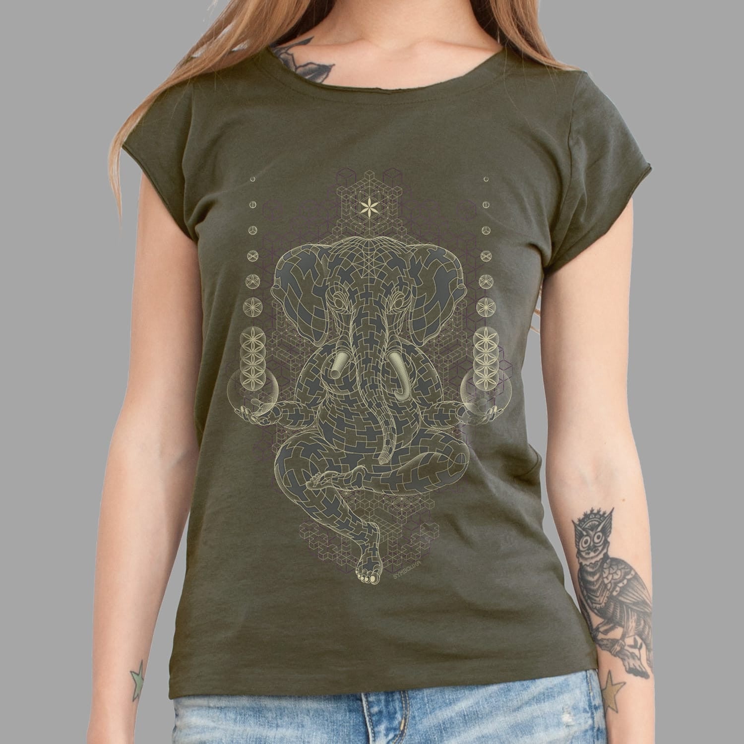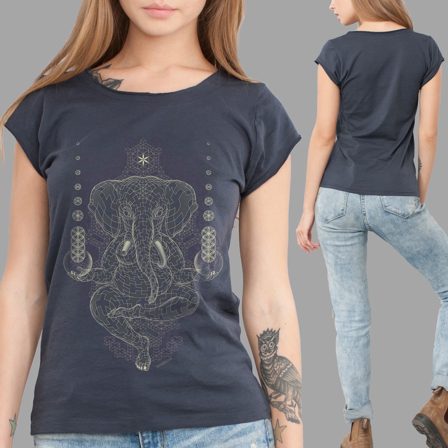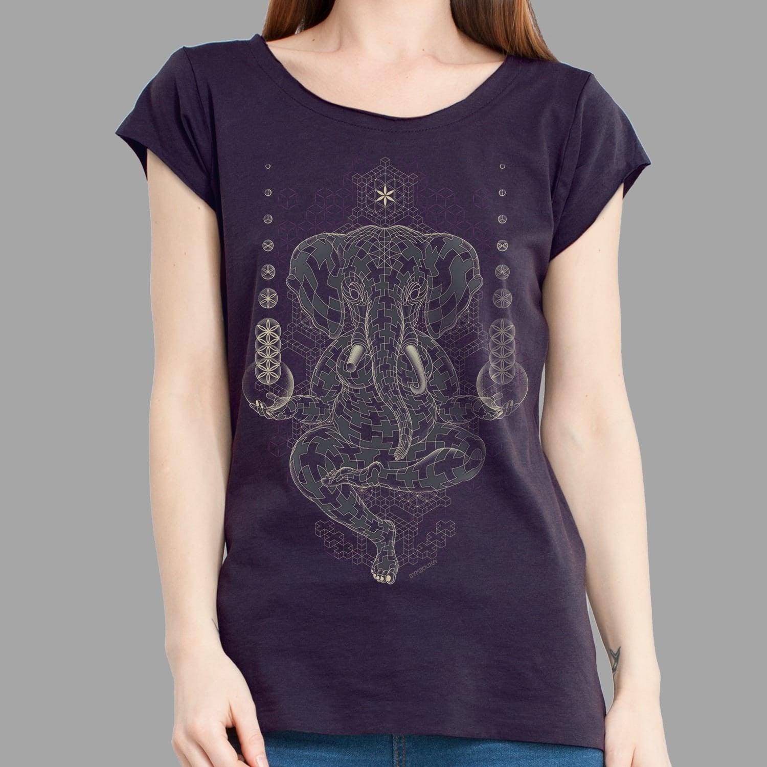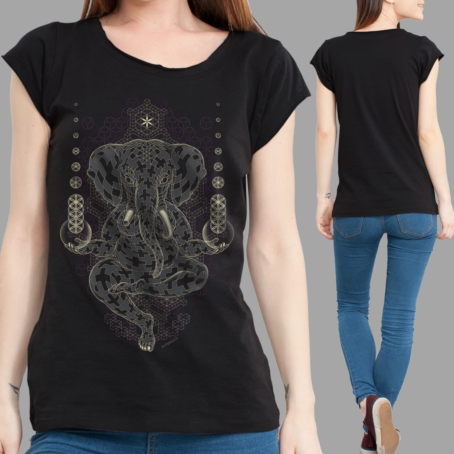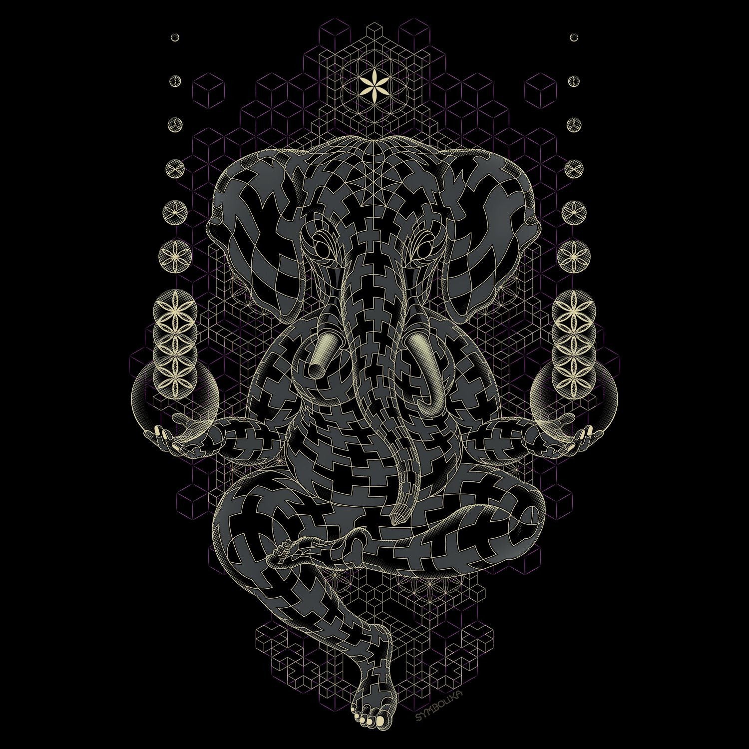 Tags: graphic illustration, style front print, mythology, spirituality, hindu, artwork ganescher, tessellation