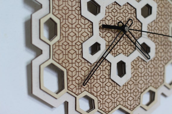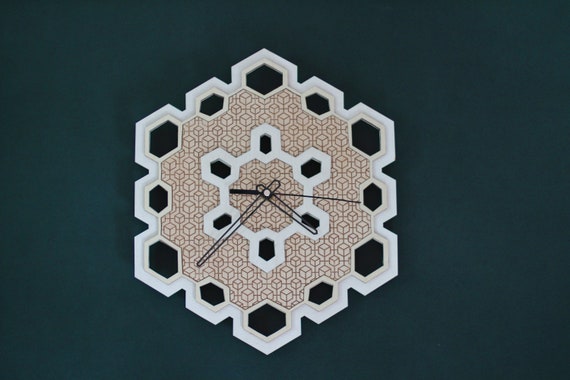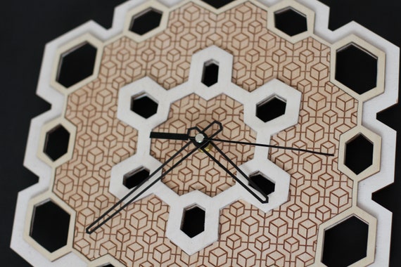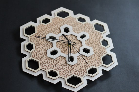 Adorn your living room/bedroom/study room with our sacred geometry wooden hexagons wall clock!