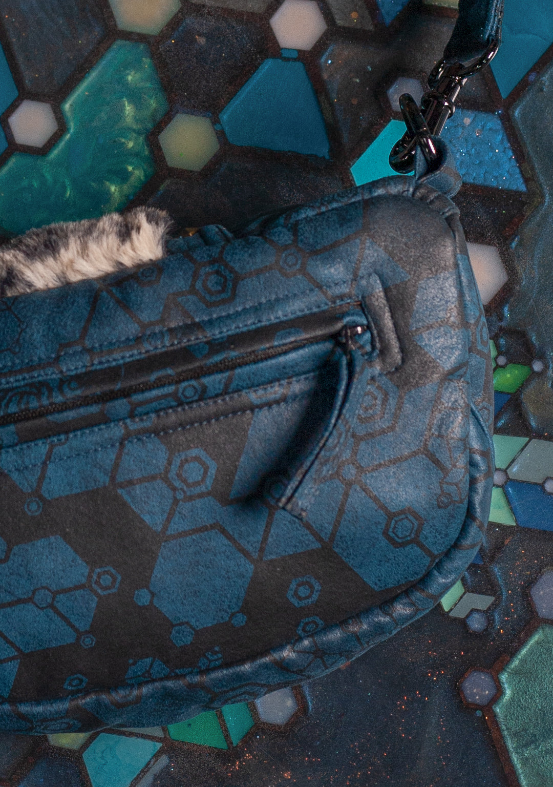 Hand Bag / Fake Leather Leopard Fur – Teal SHAMANKA