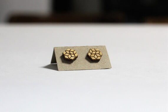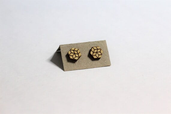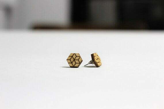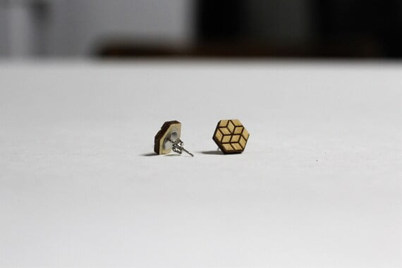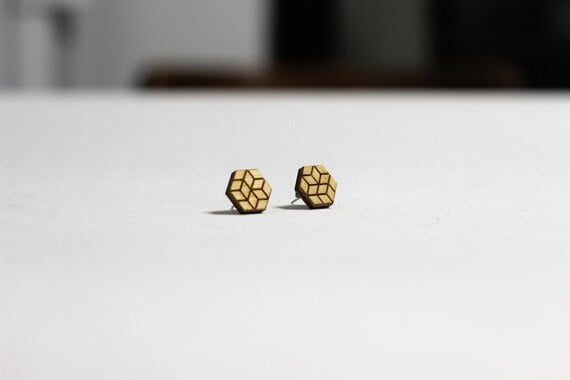 Great for everyday wear, these small wooden hexagon studs are simple and pretty with clean geometric engraving. They are very light, easy to wear and will surely become one of your favorite accessory!