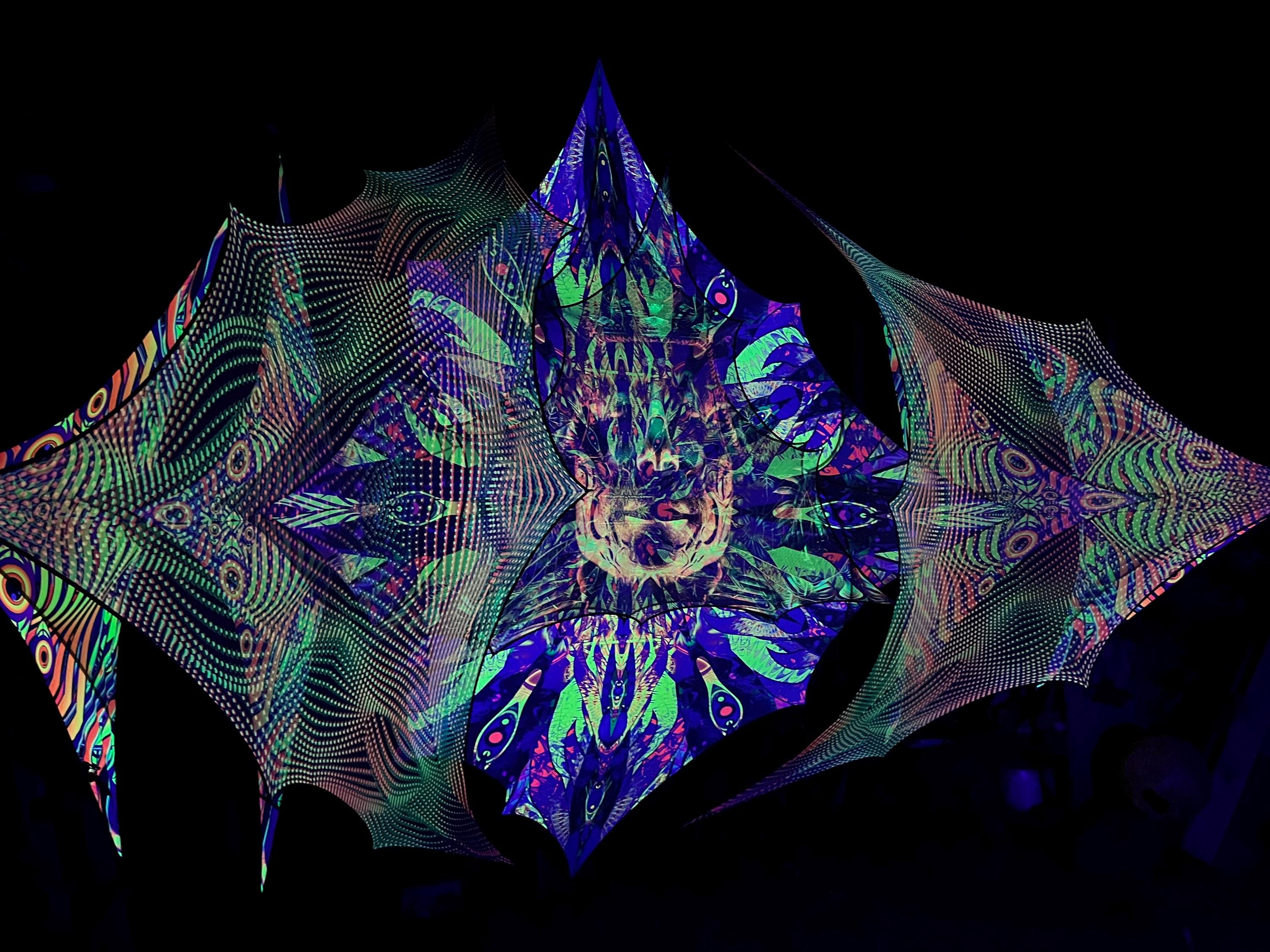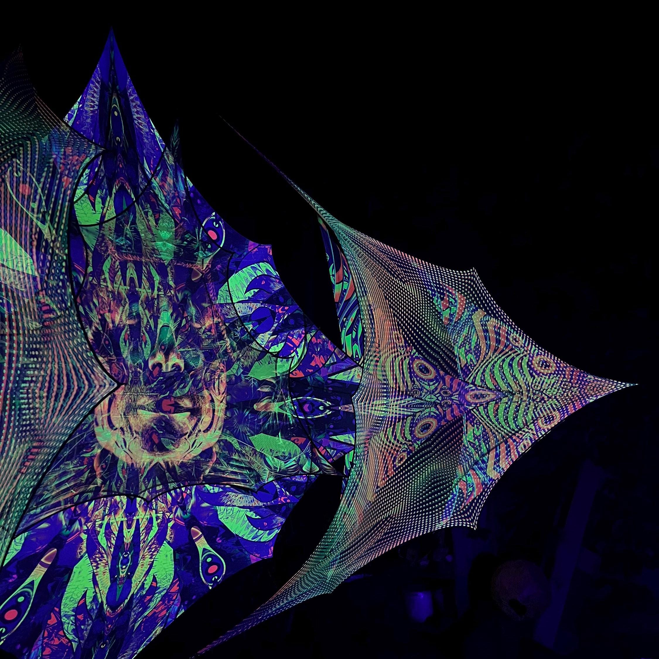 Uv psychedelic decor perfect for parties and festivals decor, uv reactive dj stage decor or DJ Booth, art installation, psytrance decor, outdoor party