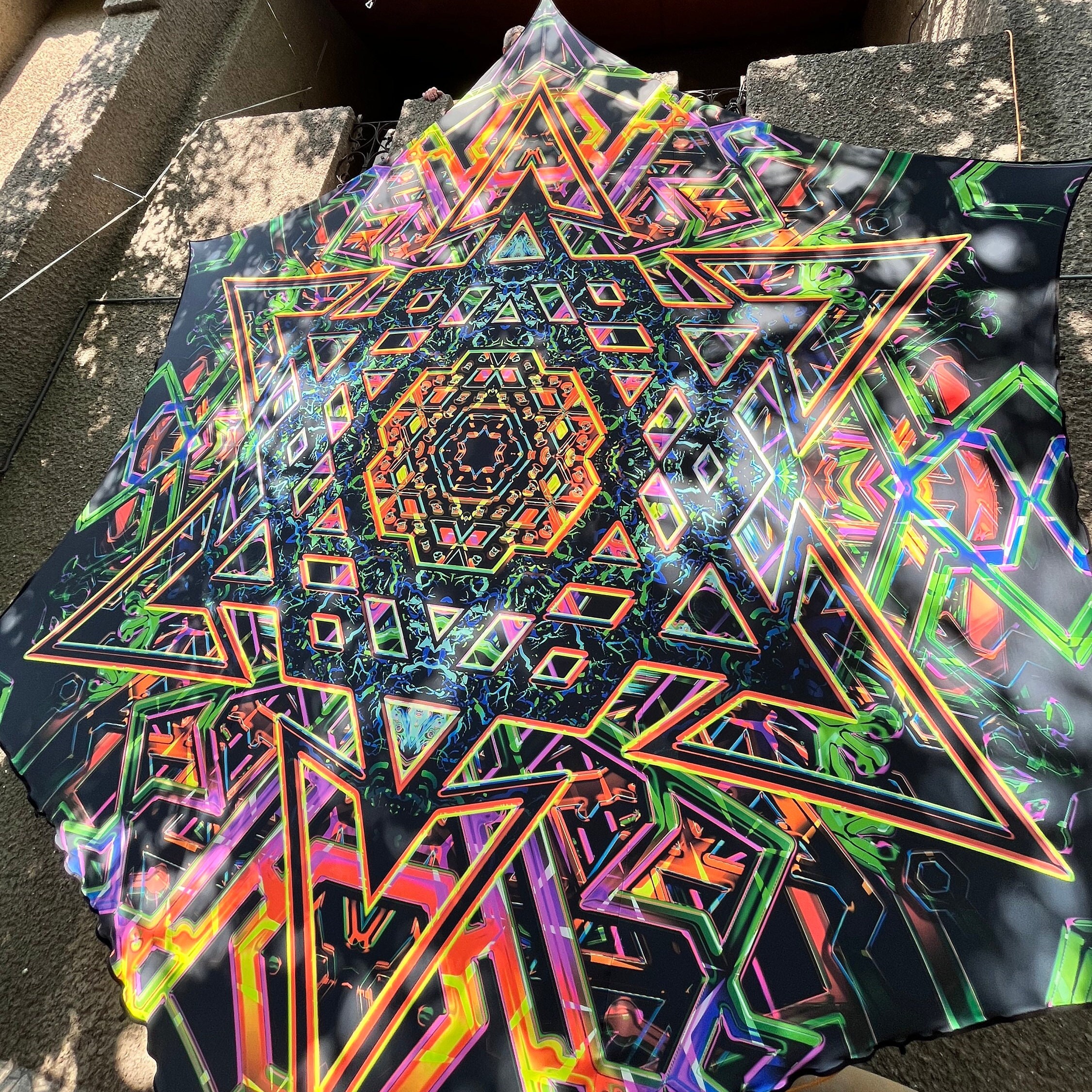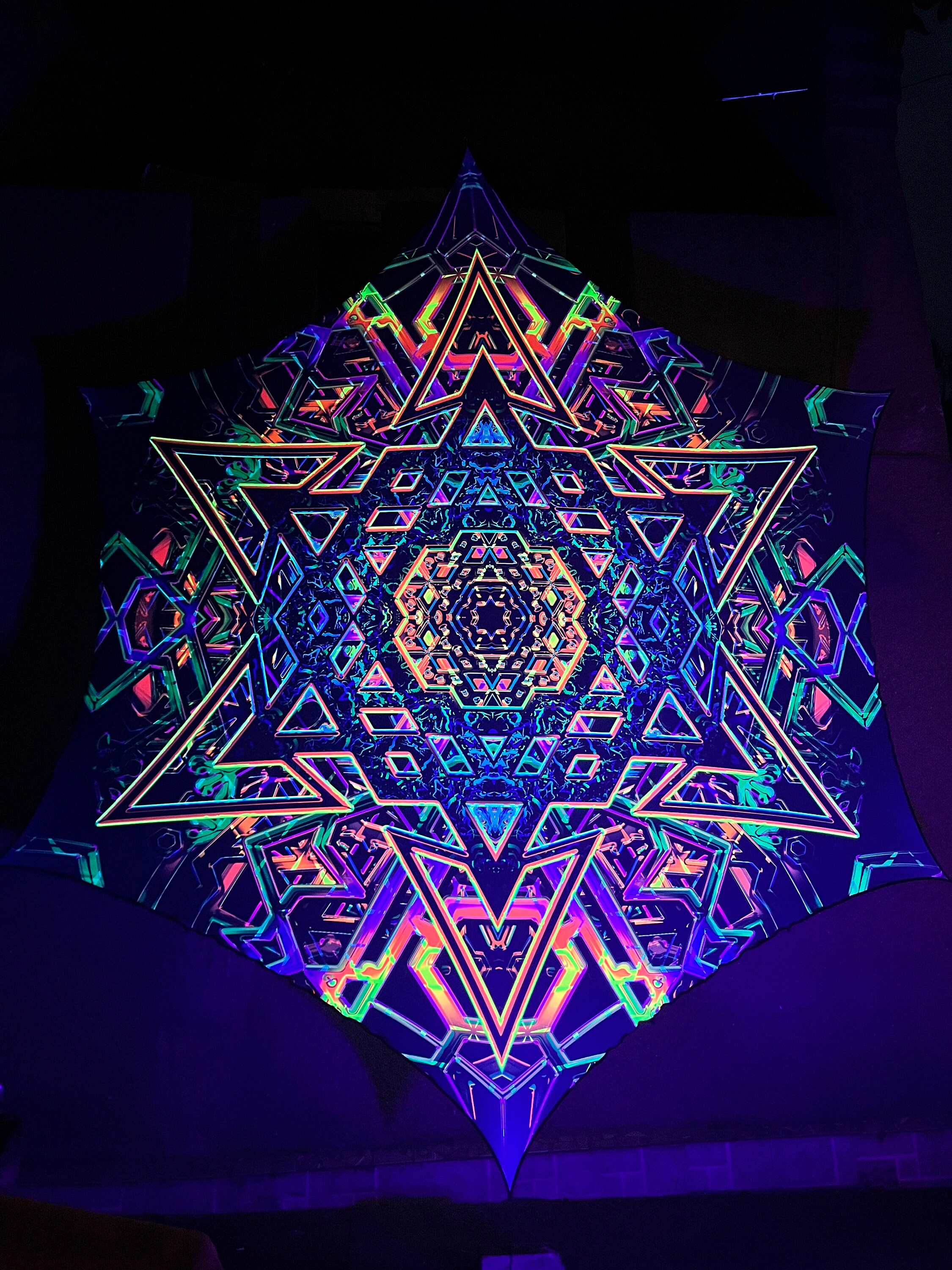 Perfect for parties and festivals decorations, home, meditation room, chilling space, studio, uv-reactive dj stage or DJ Booth, art installation, outdoor party decor psytrance
