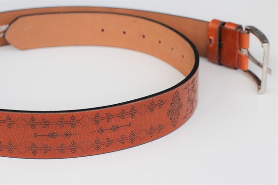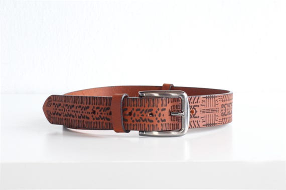 | Materials | genuine brown leather, laser engraved belt, metallic buckle |