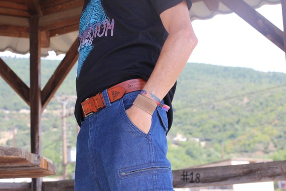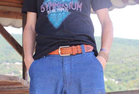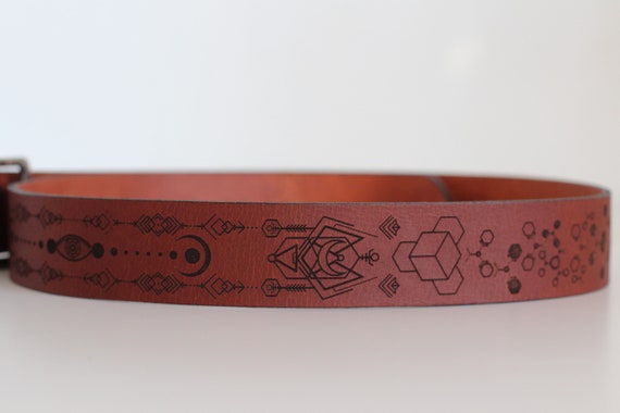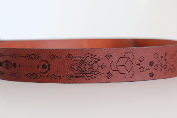 Leather Flower of Life Belt | Unisex Belts | Sacred Geometry | Brown Molecule Waistband | Psy Wear