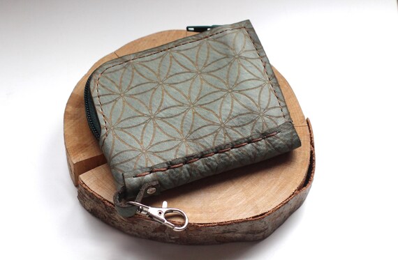 Discover elegance and spirituality combined in our handcrafted green leather square wallet, meticulously designed with an attached metal clip and adorned with the intricate Flower of Life pattern.