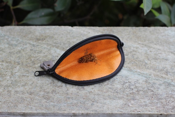 It was made of genuine leather in our studio in Karya. The pattern was laser engraved and will stay on the bag forever. This pouch is lined with real leather to make it easy to mix your herbs and roll your cigarette.