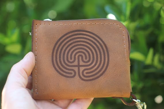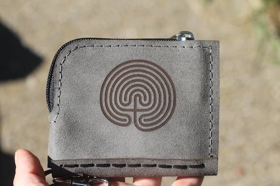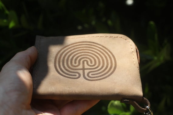 Leather Wallet, Small Money Case, Zipper Card Holder, Labyrinth Gift, Wallet with Clip, Personalised, Minimalist, Ledergeldbörse, Unisex