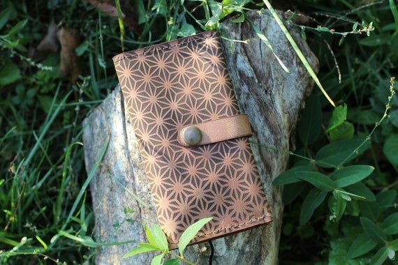 Leather Wallet Women, Japanese Asanoha Women’s Pouch, Money Holder, Personalised, Star, Flower, Zipped, Christmas Gifts, Ledergeldbörse