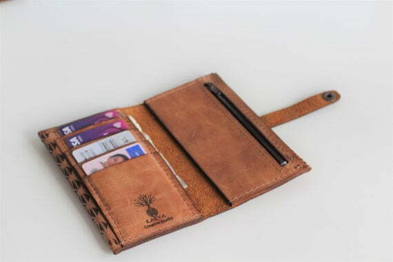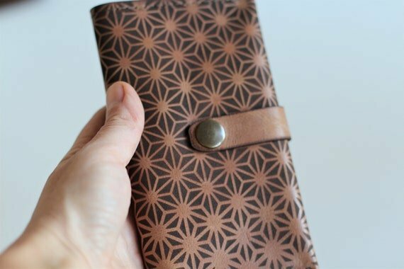 Genuine leather women’s wallet for bills, cards and coins with laser egraved Japanese Asanoha pattern. It can be personalised and will make a very unique gift for your Mother, Friend or yourself!