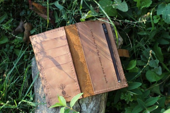 It is handcrafted of a very high quality genuine leather (cow leather) in our studio in Karya, a small village on the Olympus Mountain (Greece). Inside it has zipped compartment for coins, four slots for cards and two for bills. It closes with a button.
