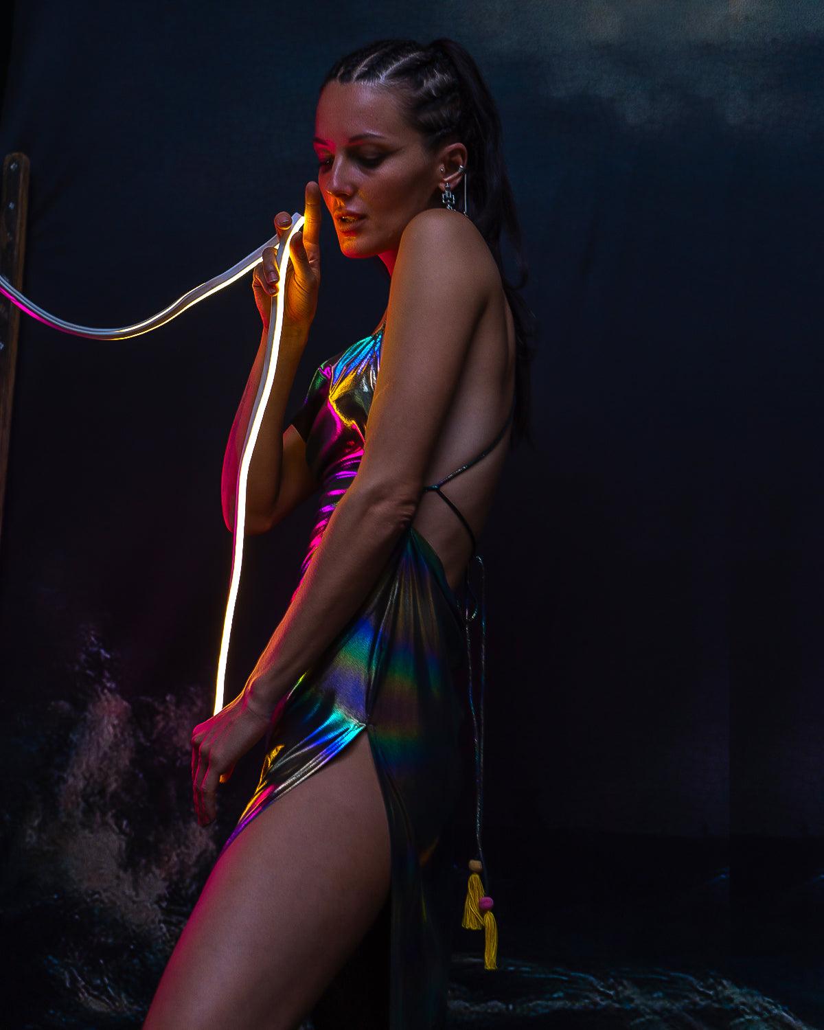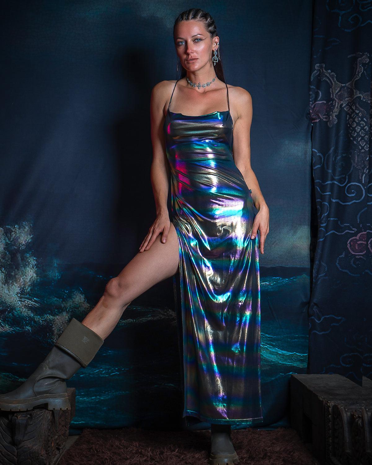 Long Bomb Dress / Holographic Rainbow- SILVER