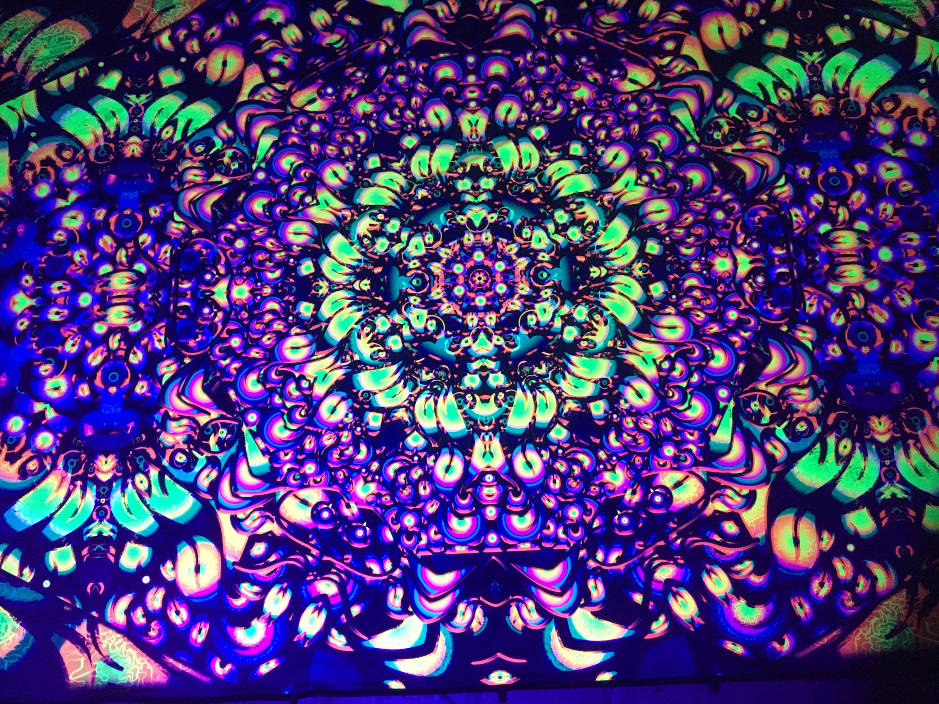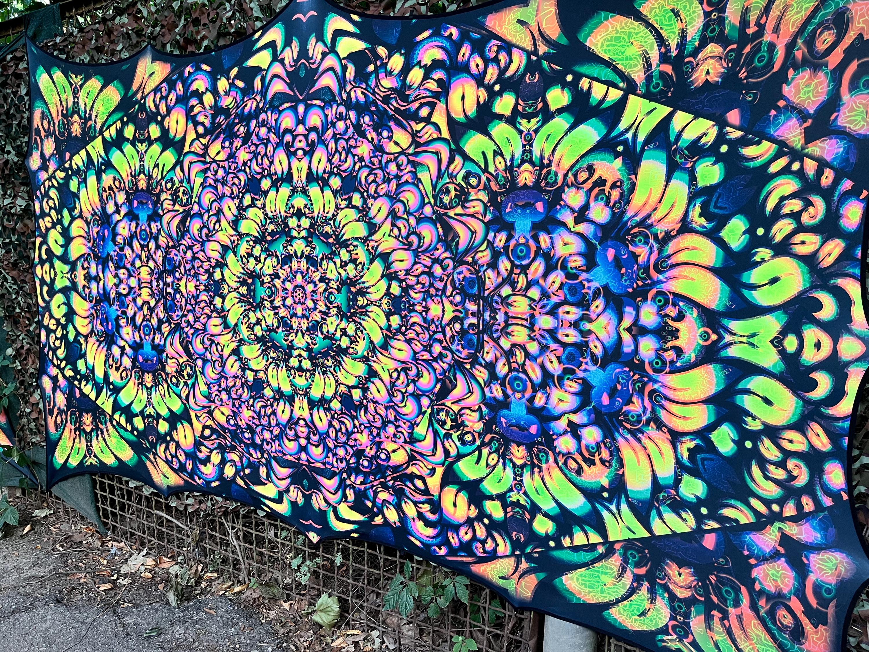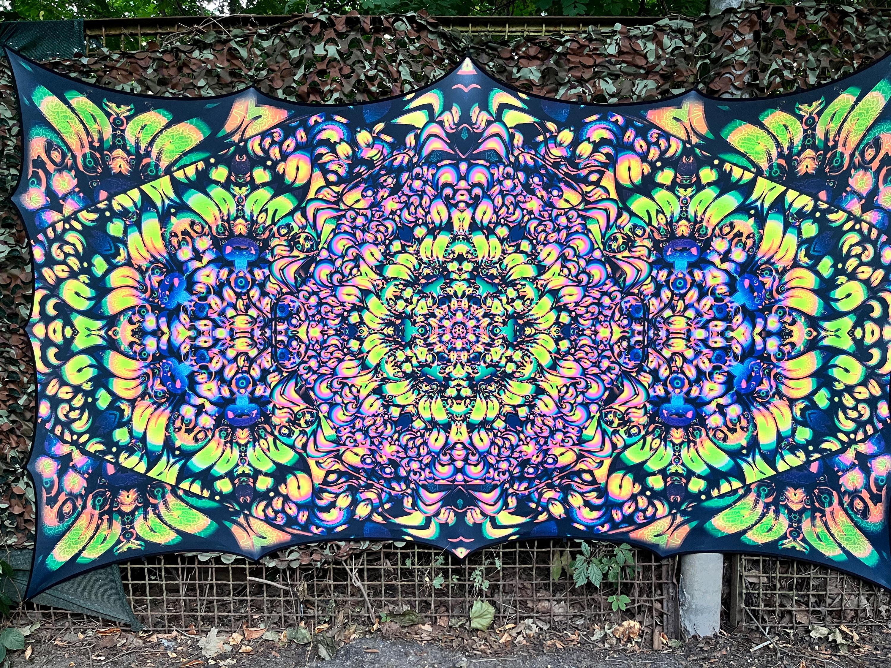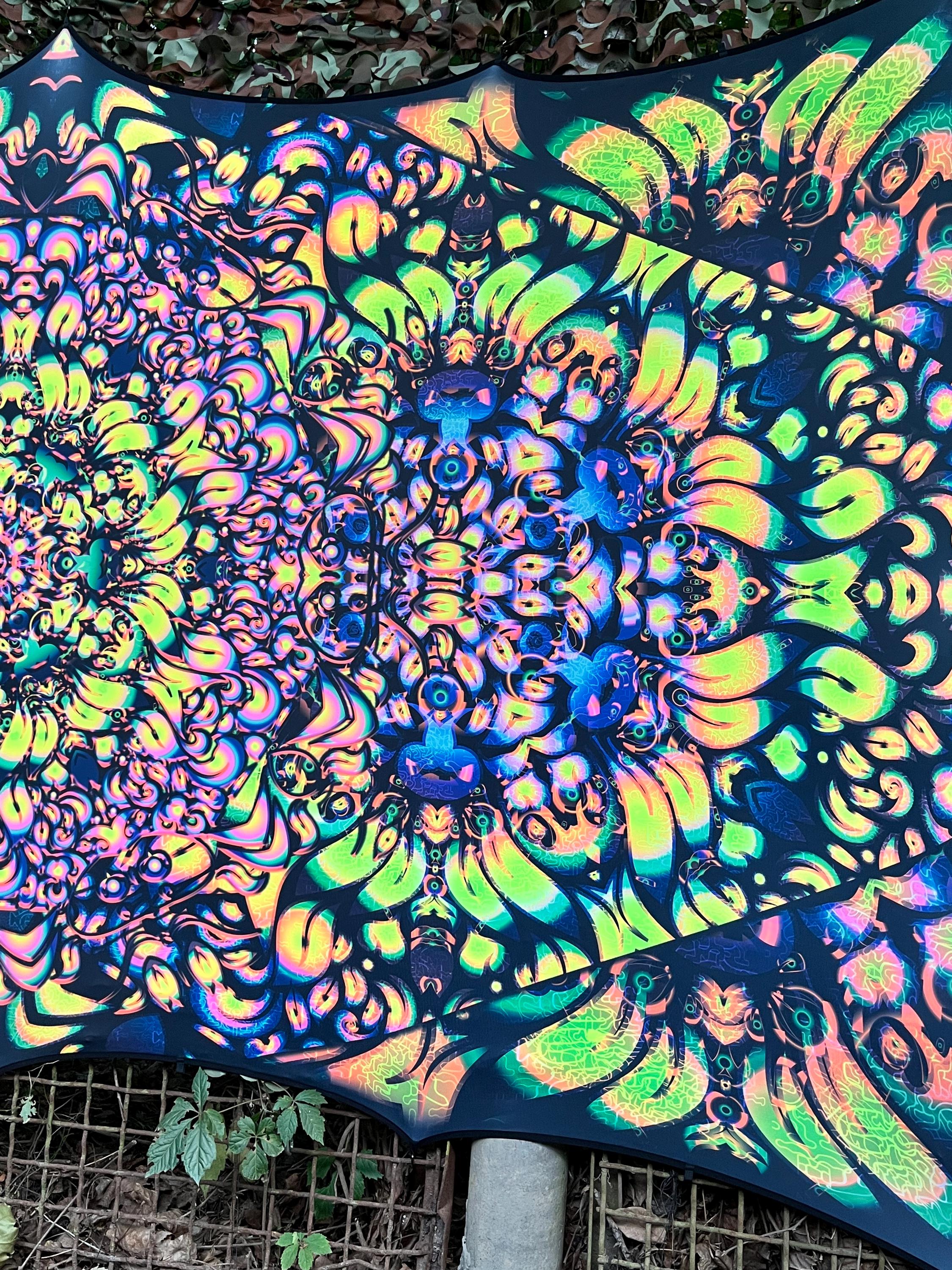 We specialize in Blacklight Tapestry, extra large wall art, Psychedelic art, outdoor party decor, psychedelic poster, flower dj stage, DJ Booth, UV Psychedelic Backdrop, party decorations, ceiling decor, modern decor, neon tapestry, trippy art, surreal art, sacred geometry art, party decor, neon sign art, Spiritual Art, wall art prints, textile art, psy artwork, etc.