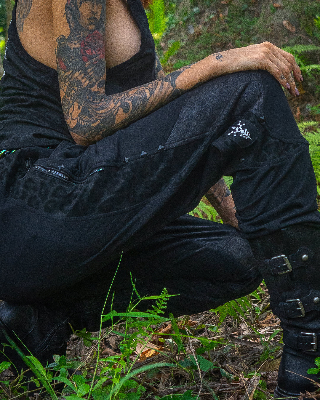 Amazing Dark LEOPARD Fake Leather Patches Cotton Fleece Joggers,