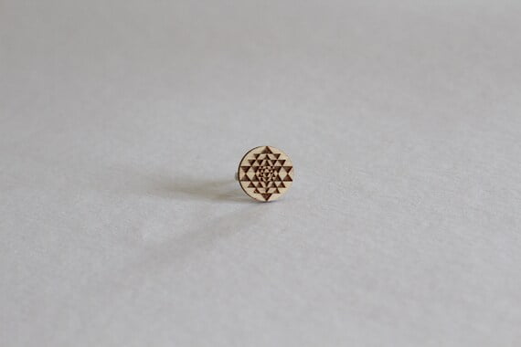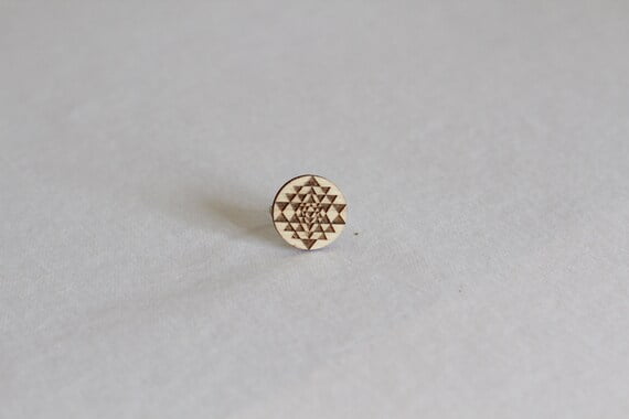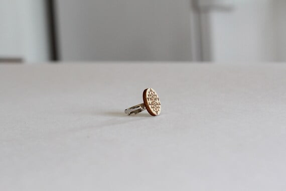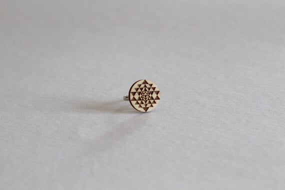 This laser cut wooden ring with laser etched Infinity Sri Yantra is made in our small studio in Karya, Greece. It has adjustable, stainless steel base of a silver colour. The wooden part is made of 3mm birch plywood which was sourced locally and varnished to protect it from humidity. The ring is very light and eco – friendly.