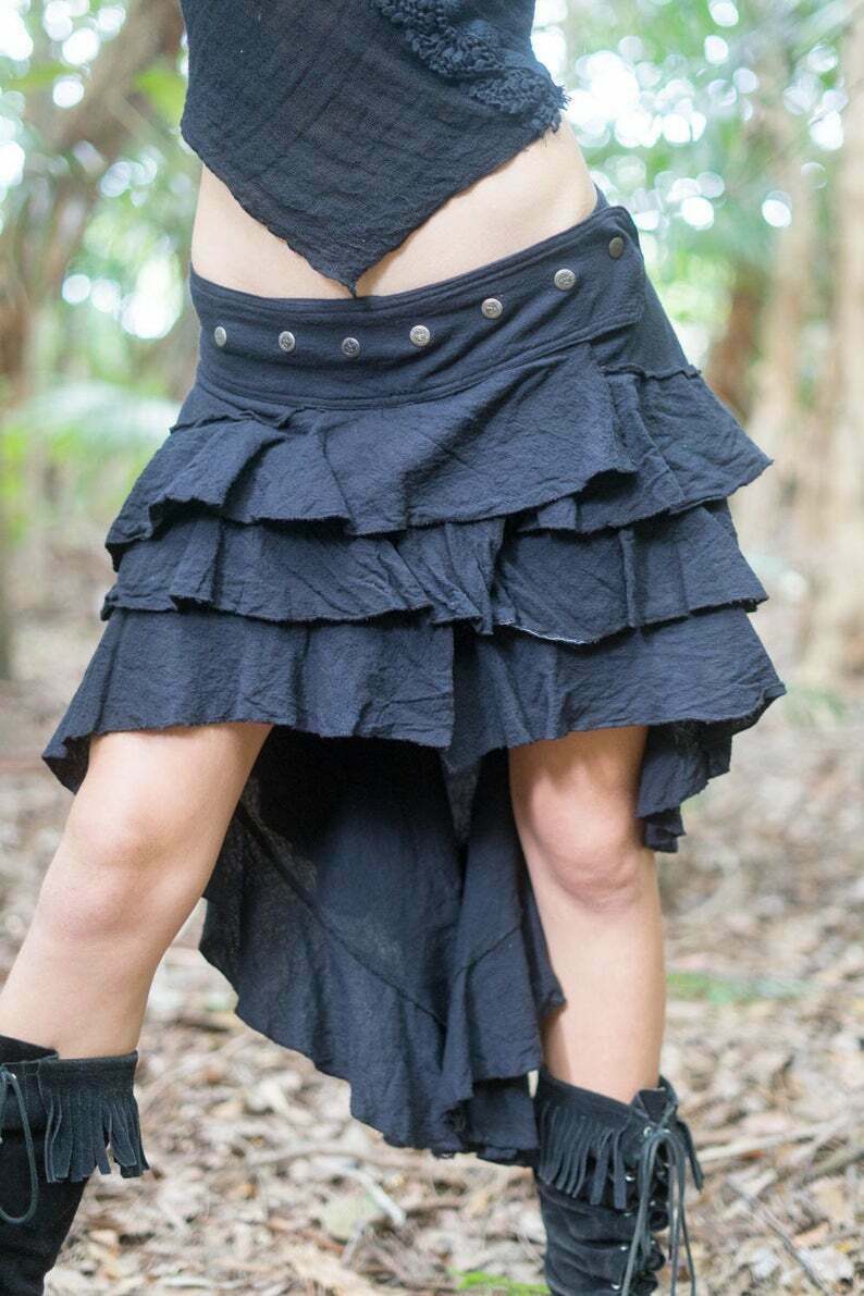 Sitting longer in the back and higher at the front the Ruffle Skirt is a fun and elegant One Size Fits All skirt with adjustable clasps.