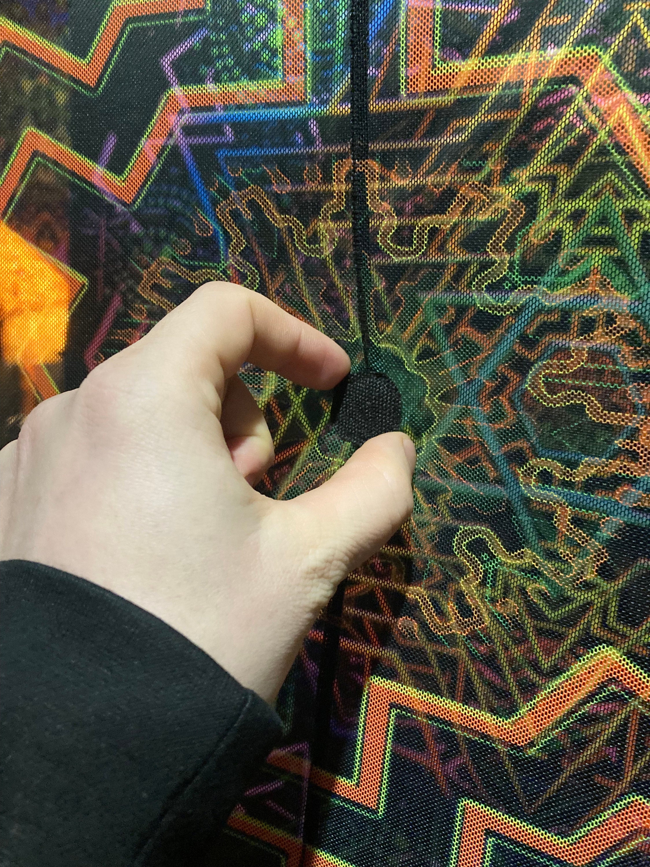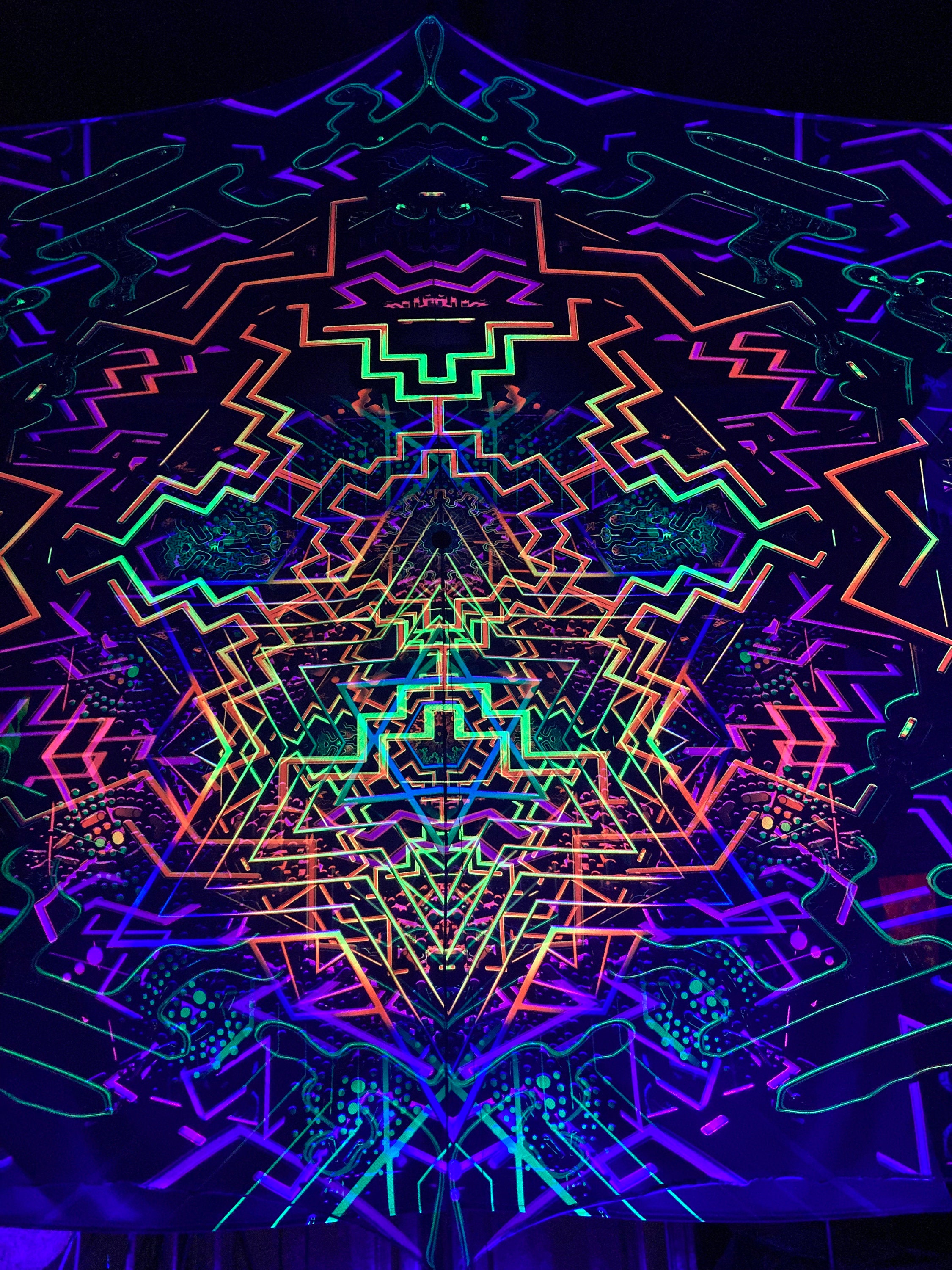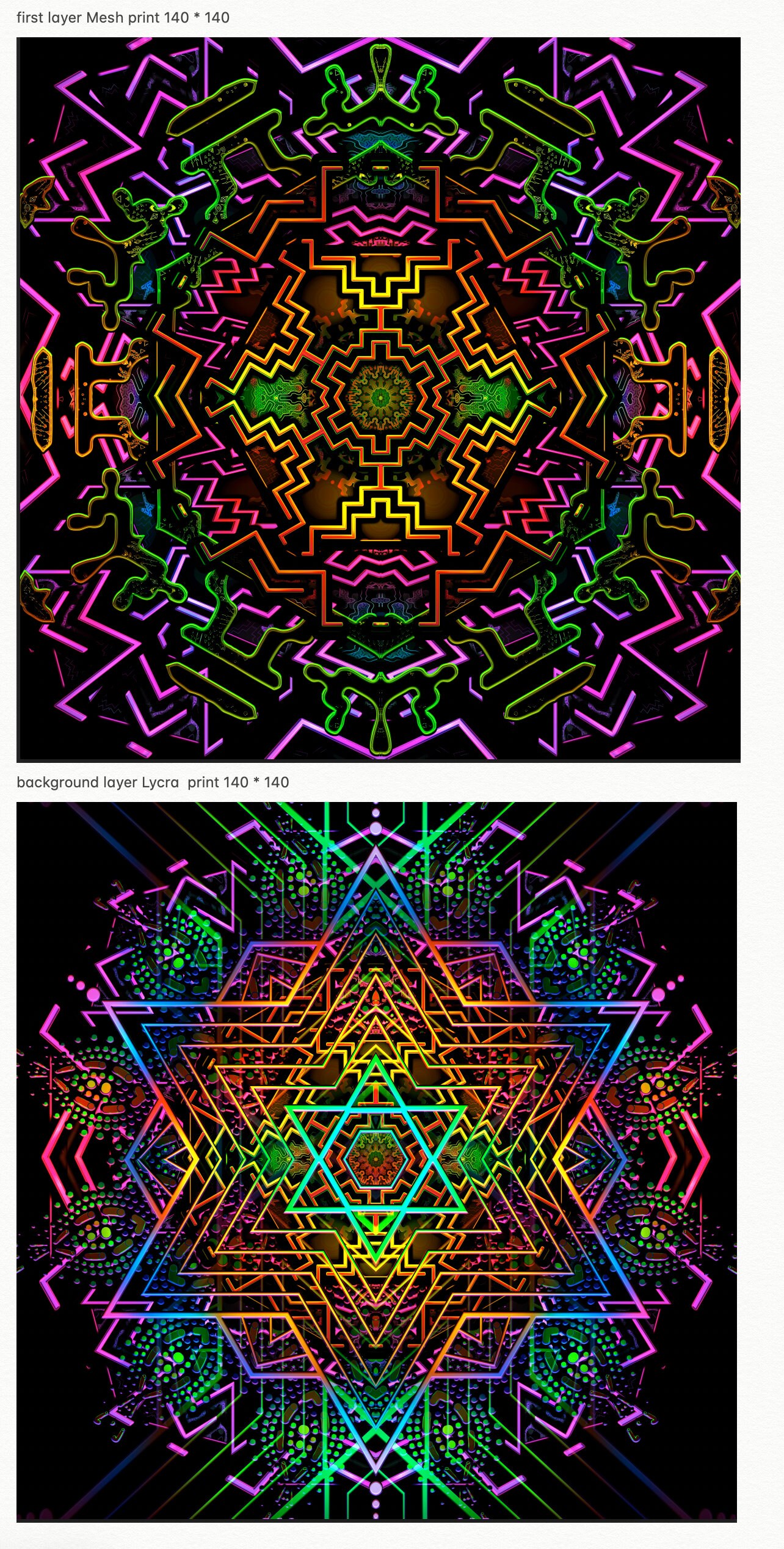 SACRAL LINES 1 Layer Mesh Print + 1 Satin Print 3D Installation Blacklight Spiritual Tapestry fractal art Fabric