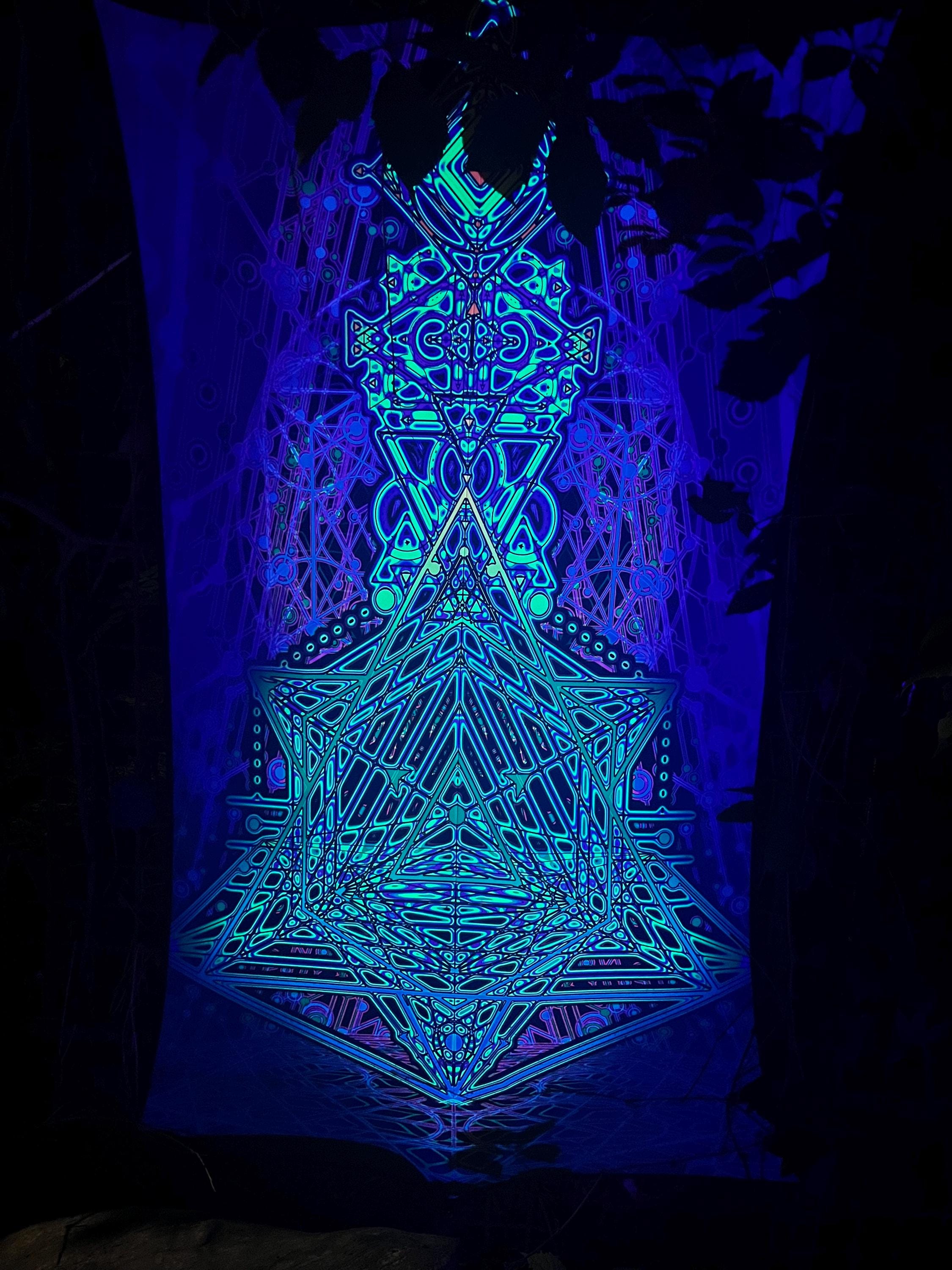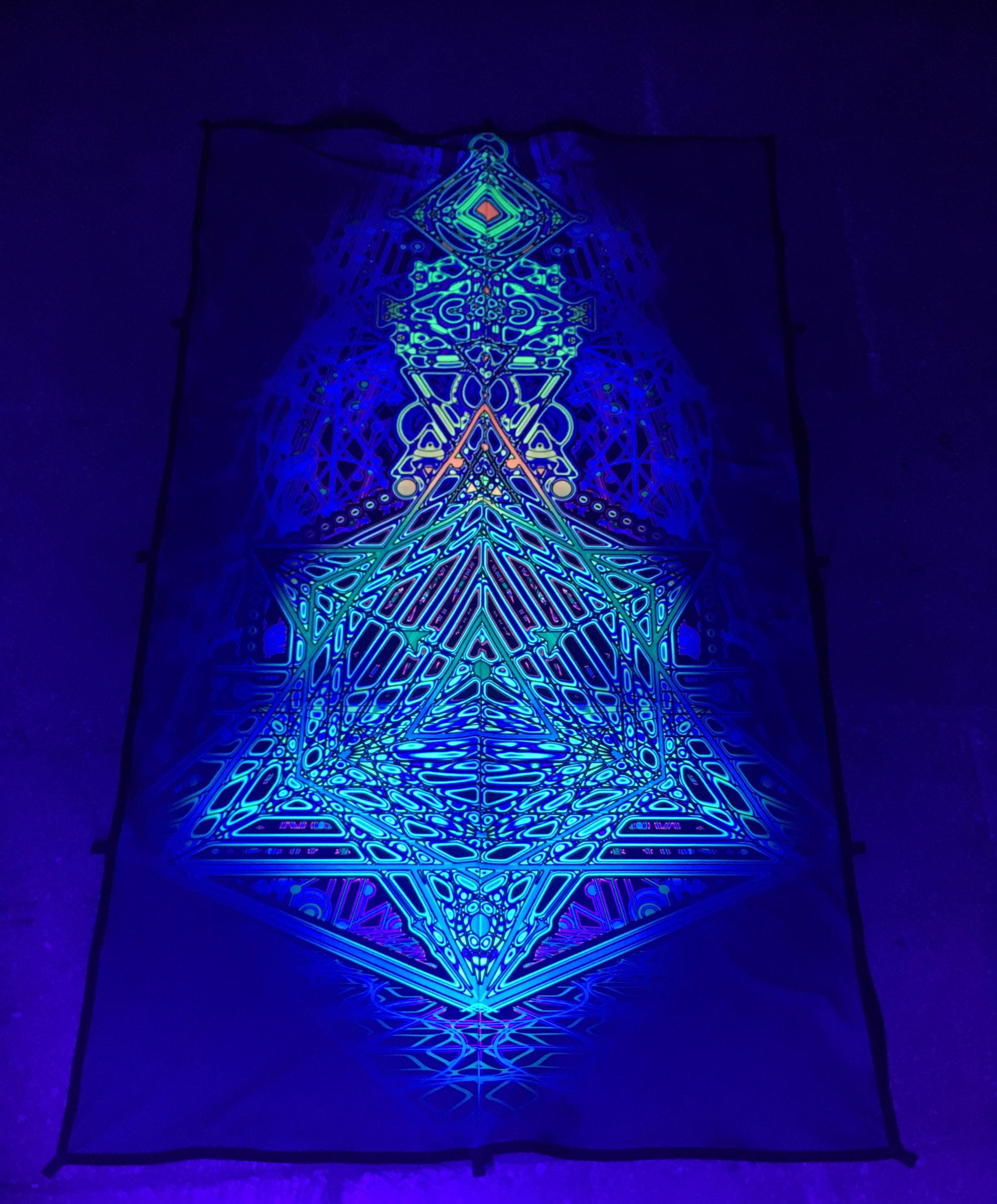 Sacred Geometry Blacklight Tapestry Merkaba, Neon Psychedelic Art – Fluorescent Party Decor, Glow in the dark