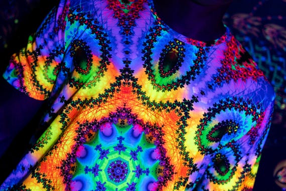 Blacklight Psychedelic and Neon Ultraviolet Active T-shirt "The Flower of Harmonius" for Men and Unisex