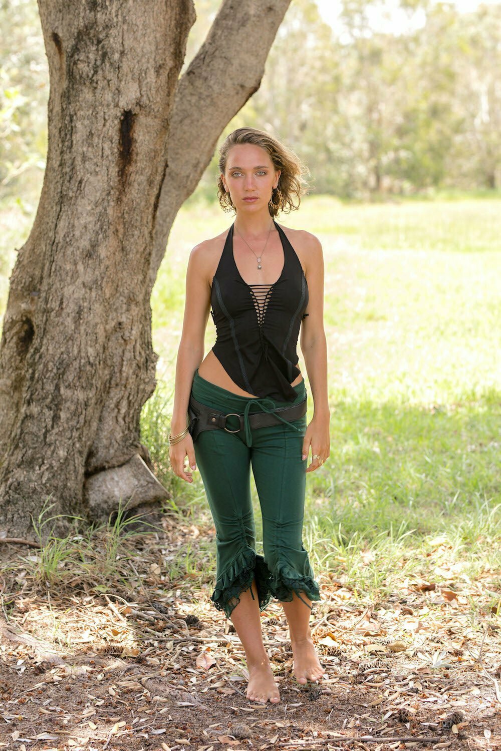 Beautiful soft cotton lycra tights. The fit is perfect cut below the knee. Add some ruffles a little lace and you have the magical pixie forest leggings.