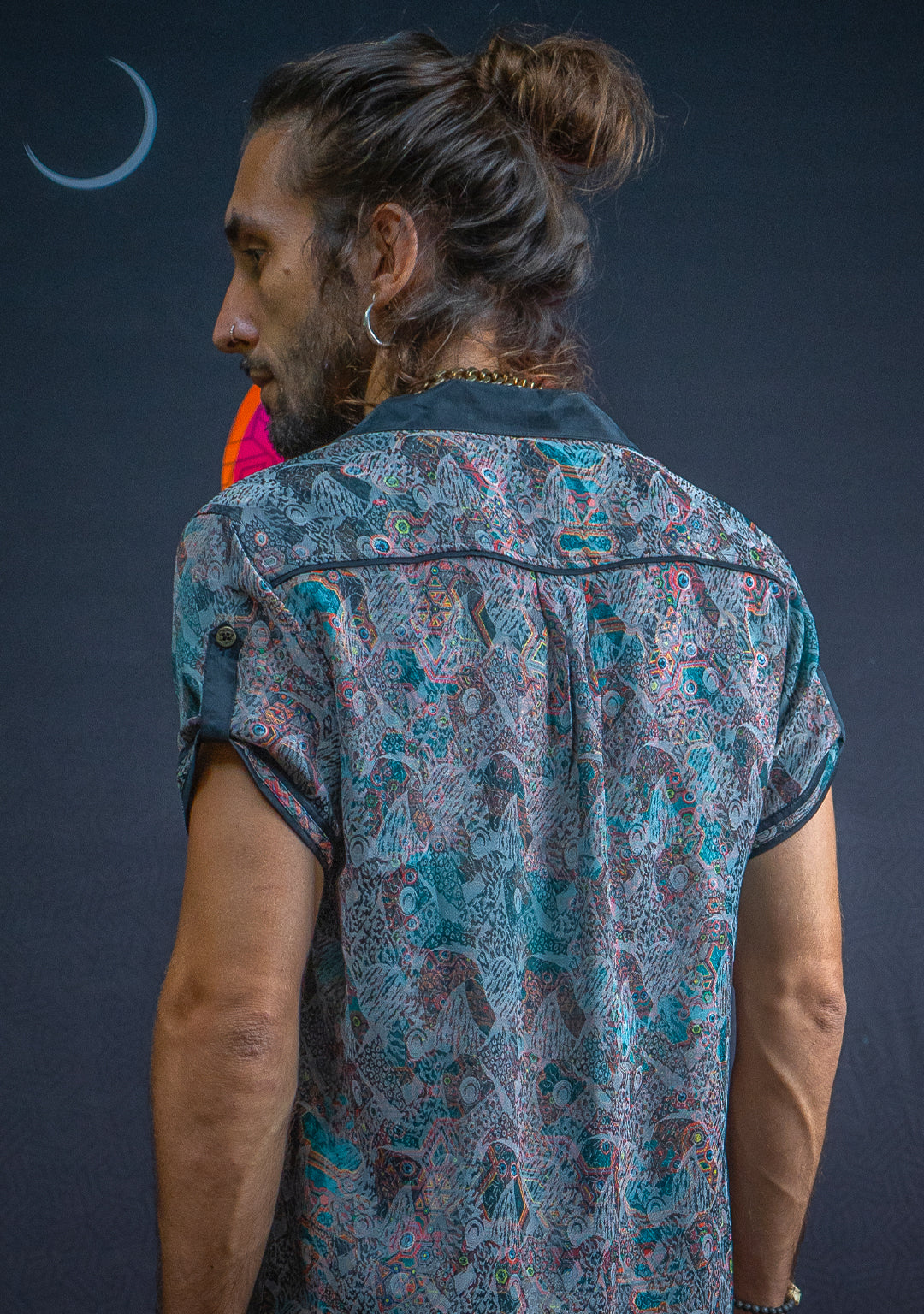 Shirt Men DOLCE Half Sleeves / Japanese Uragiri – Grey Peacock ATLANTHEON Black Kupra