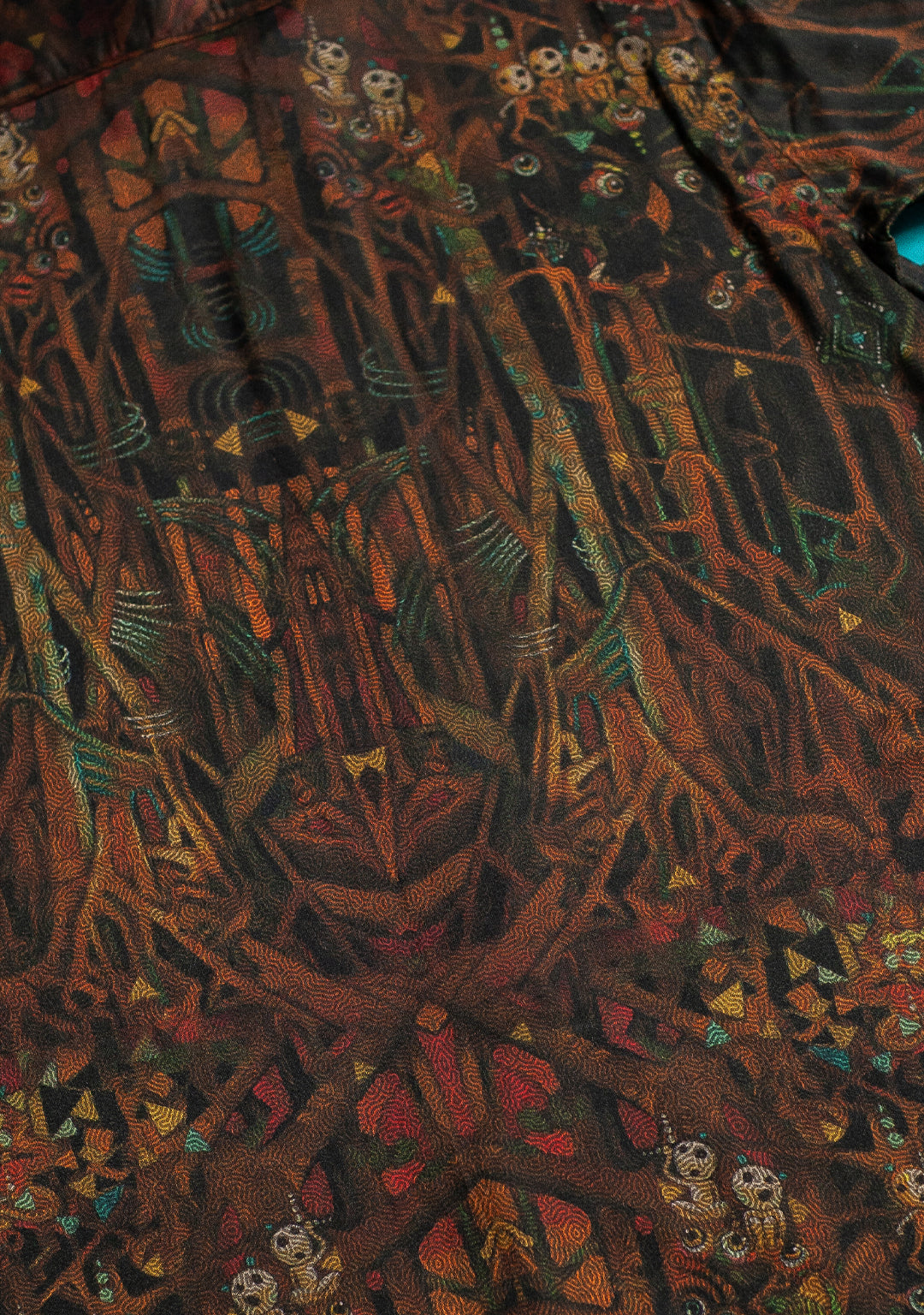 This is the first time I use my oil paintings from back in the day in a print for the clothing, I have to say I am surprised how good it looks ! BANYAN SPIRITS is the name of the Original Painting but for this Shirt what comes in my mind is MONONOKE and the OWL !!!