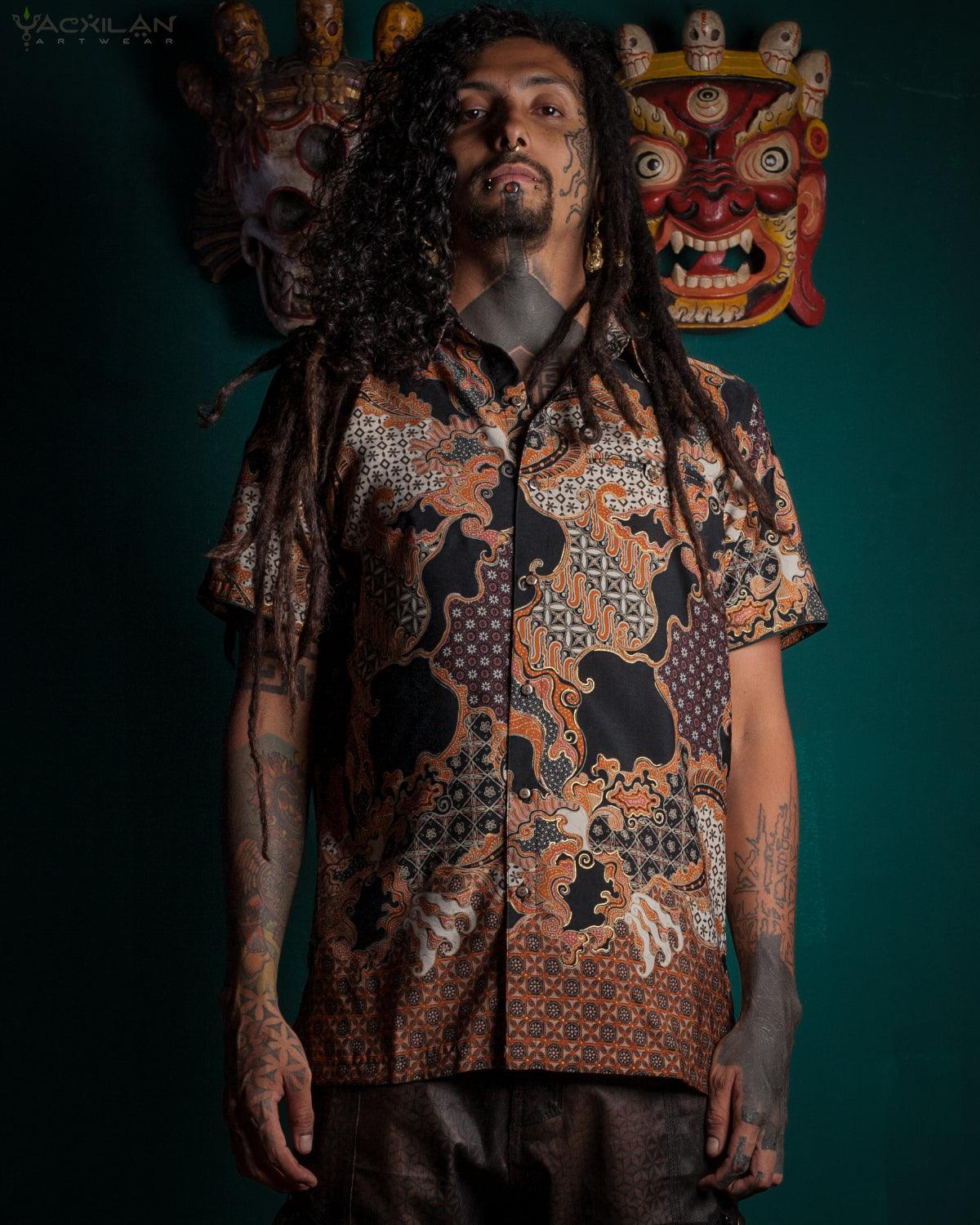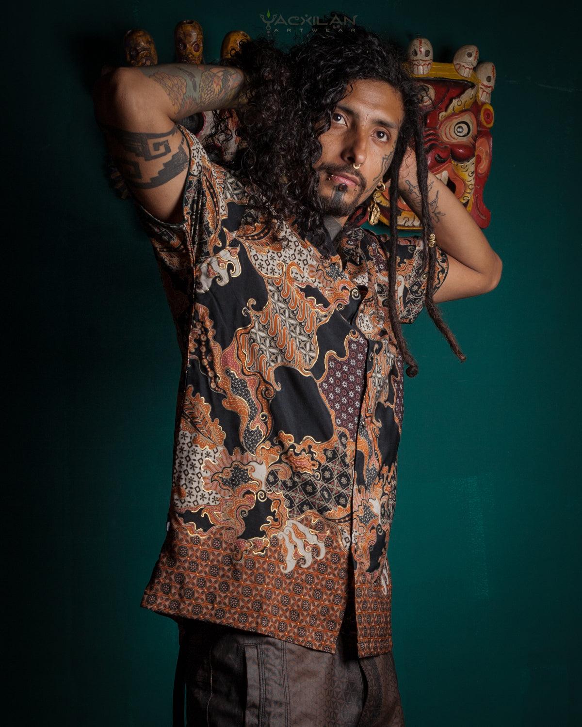 Shirt Men Half Sleeves / Cotton Printed – Orange BATIK