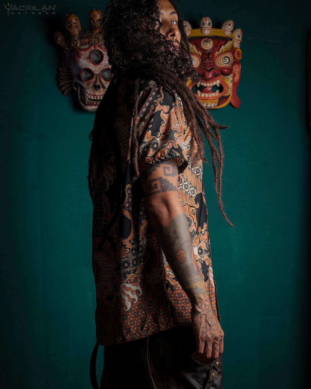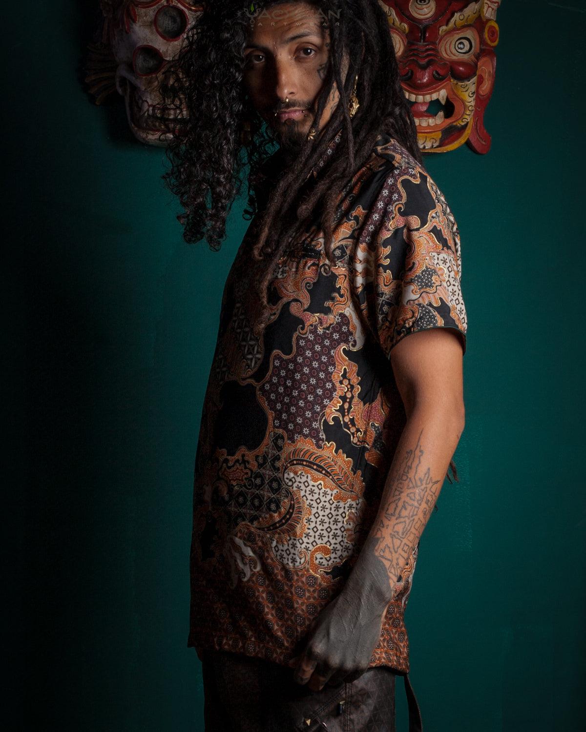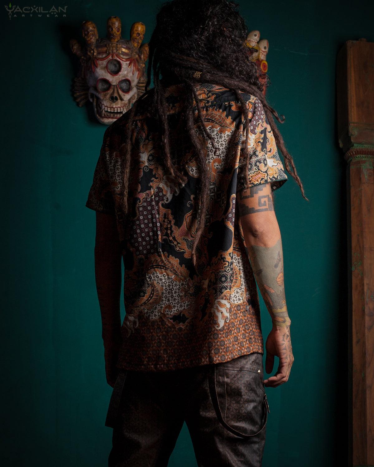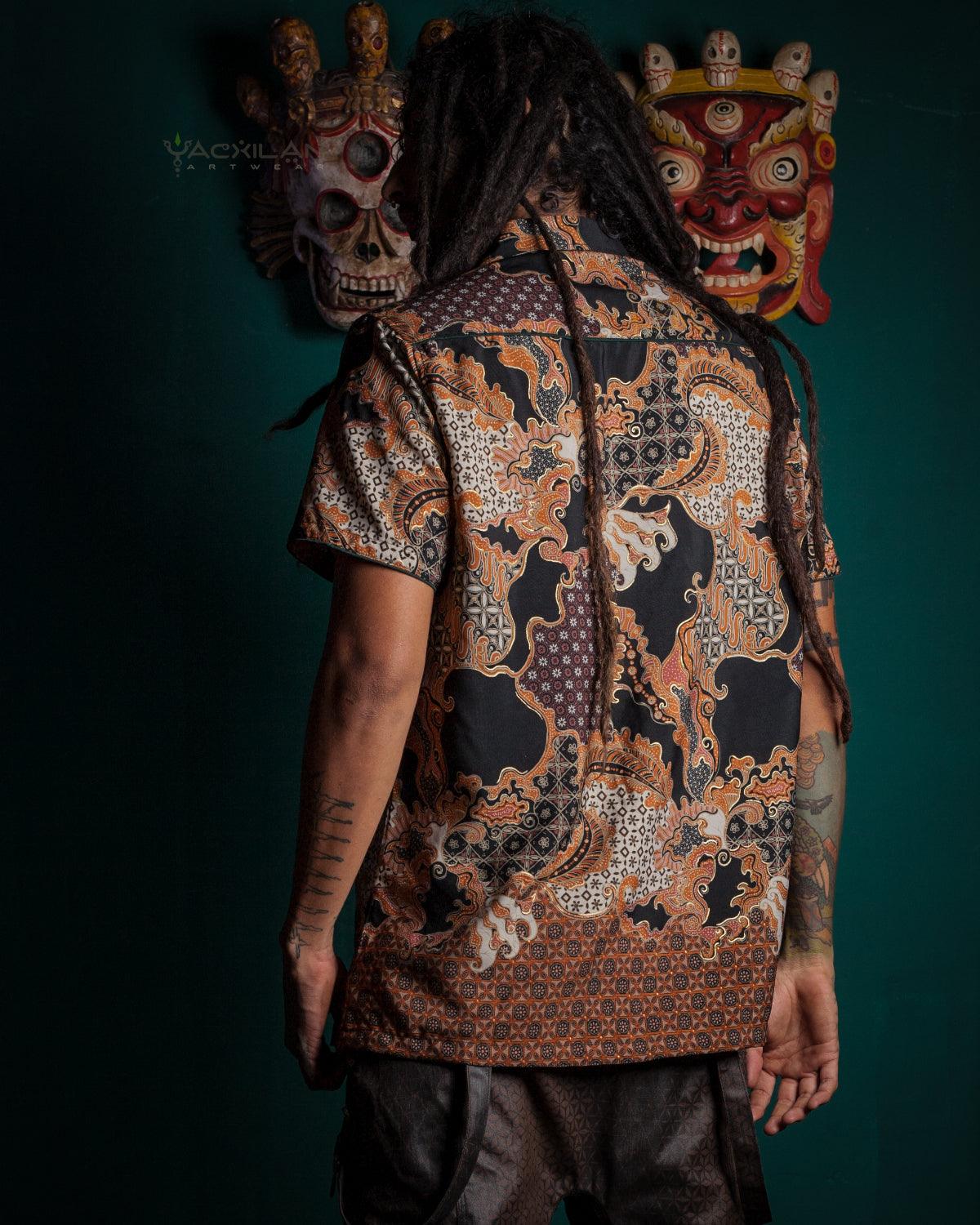 Men’s Half Sleeve Shirts Cotton Batik all over Digital Print – Orange BATIK