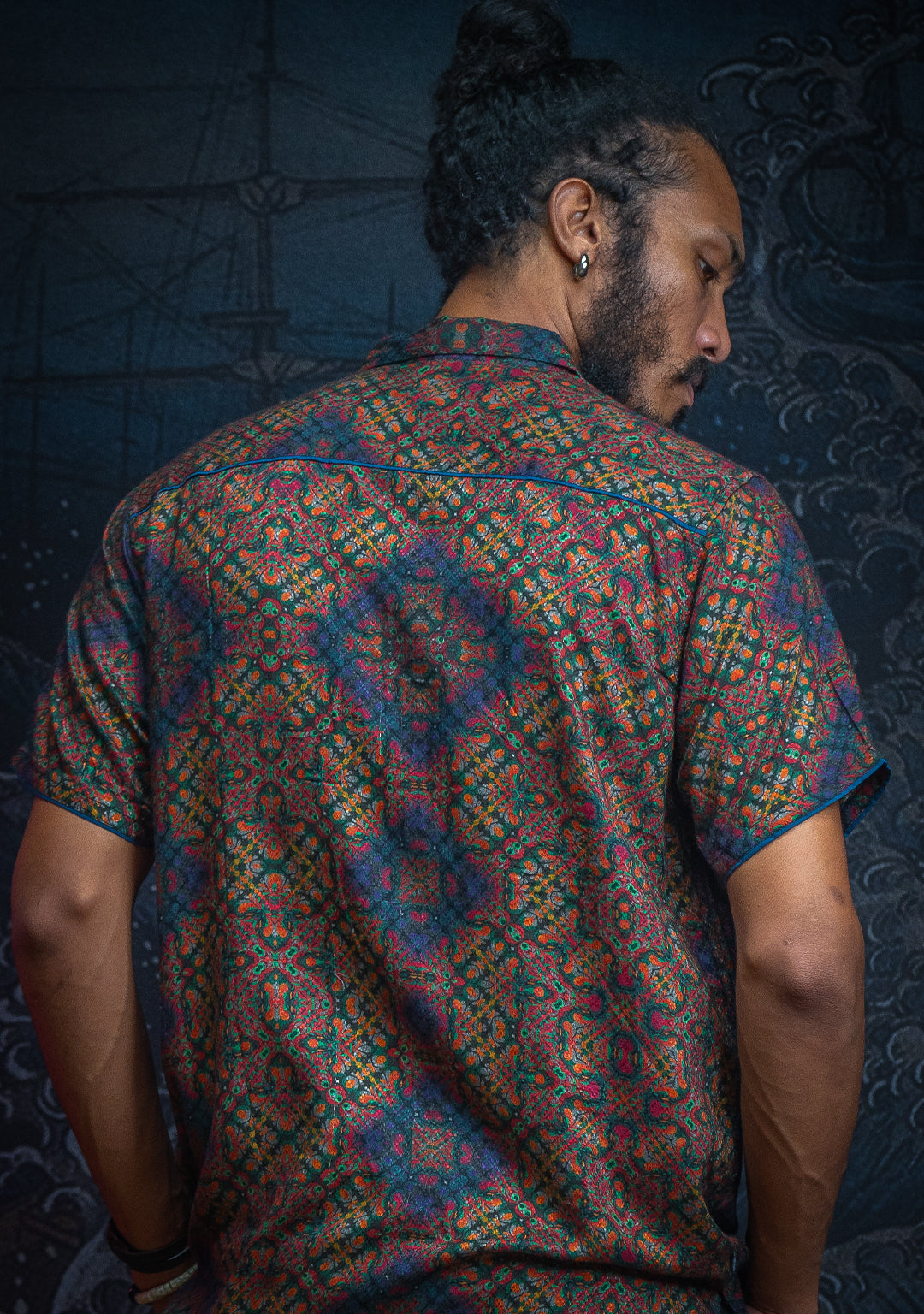 Shirt Men Half Sleeves / Viscose Diamond Weave- DELIKSATEZEN