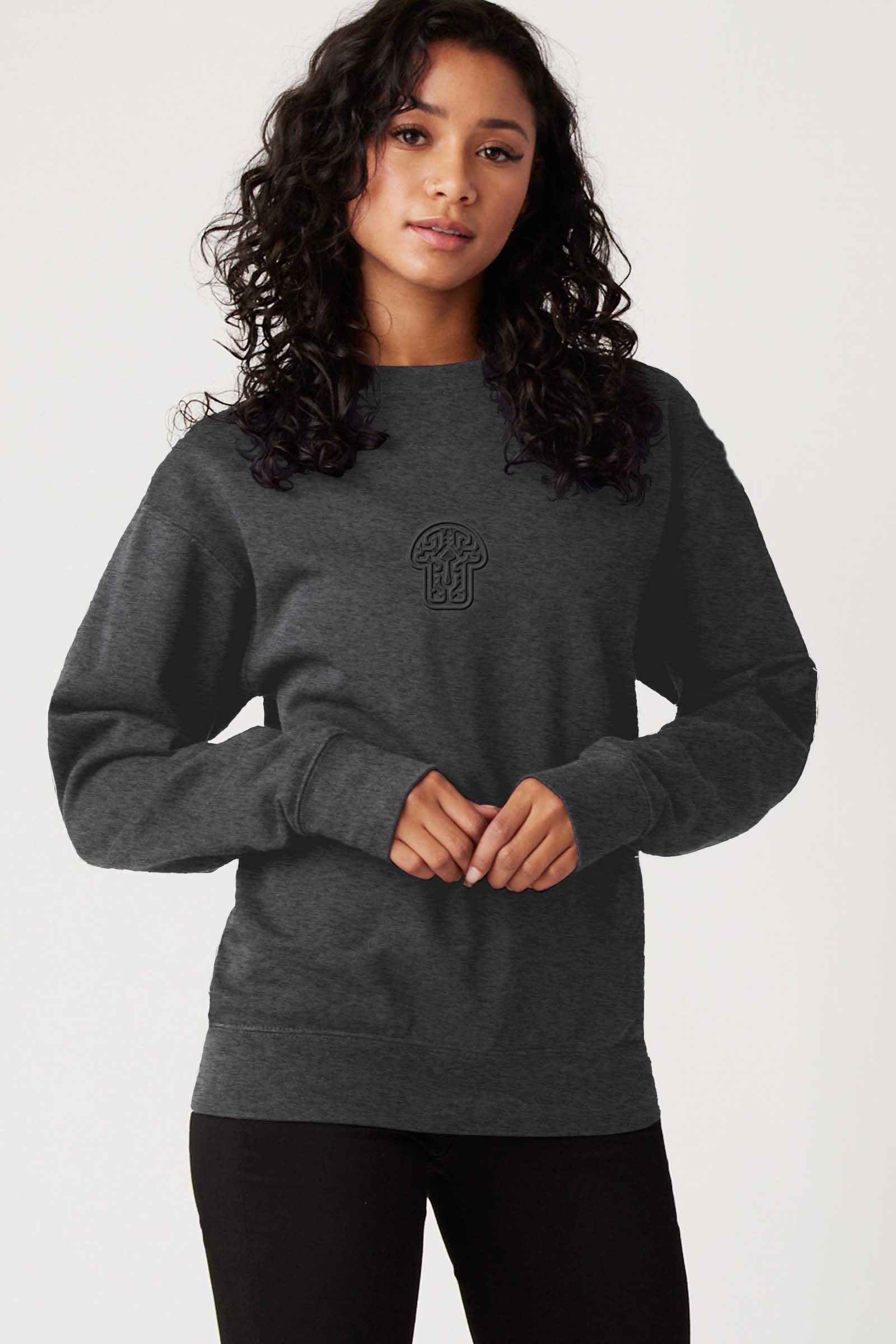 Shroom – black Embroidery on Charcoal Heather Unisex Premium Sweatshirt