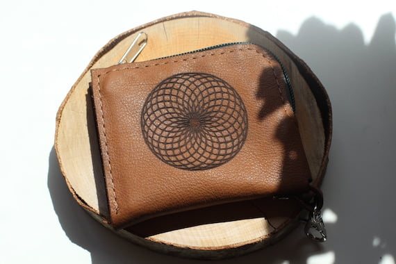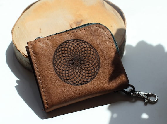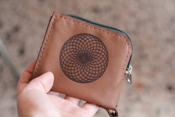 This genuine compact wallet for bills, cards and coins with laser egraved Torus Eye and Flower of Life is very soft and begs to be touched! It will make a lovely gift for yourself or your friend who loves sacred geometry.
