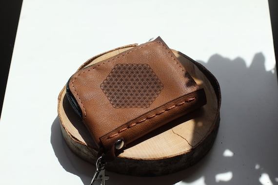 Small Genuine Leather Wallet, Flower of Life Compact Pouch, Torus Eye, Zipped Money Purse, Card Holder, Clip Coin Purse, Ledergeldbörse