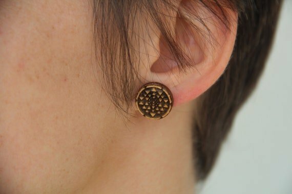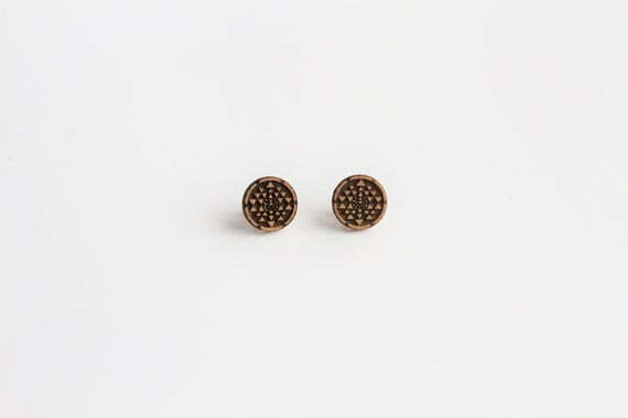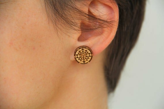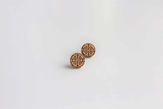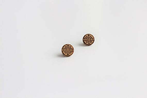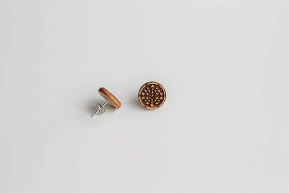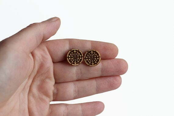 These beautiful, laser cut Sri Yantra wood stud earrings will make a lovely gift for her. They are very pretty, light and easy to wear. They come in two design variations and will complete your/your friend’s boho/hippie look. Great festival accessory.