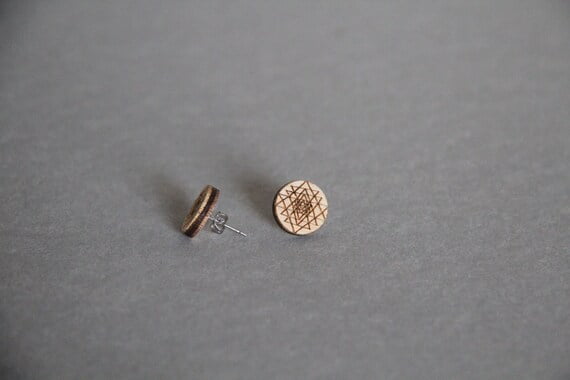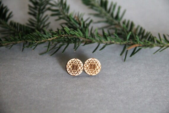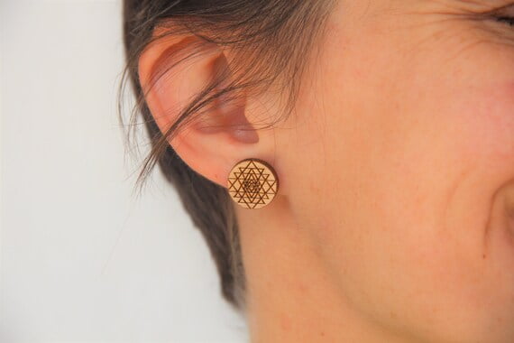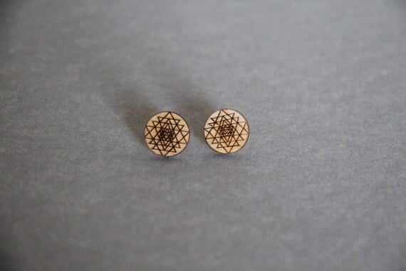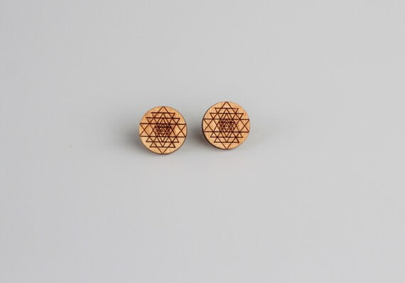 These beautiful laser cut wood stud earrings with laser etched Sri Yantra will make a lovely gift not only for a sacred geometry lover! They are very pretty, light and easy to wear all year round. They will complete your boho/hippie look.