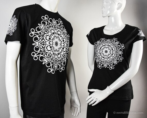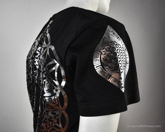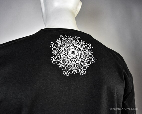 Mirror, multi-level original graphics made by hand with the utmost care for every detail. Your eyes will go mad at the complexity and depth of this pattern. The enormity of work put into the shirt and its decoration can be felt in every inch of its material, see for yourself.