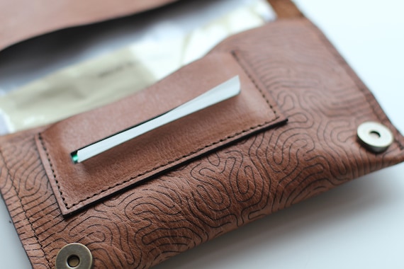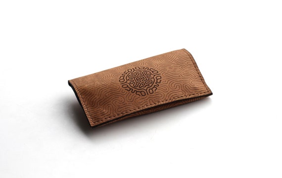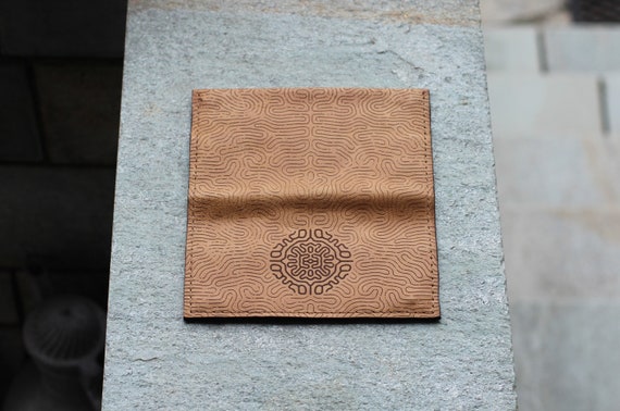 Genuine Leather Tobacco Pouch, Handcrafted Rolling Cigarettes Case, Labyrinth Lovers Gifts, Unique Gift for Smokers, Slowow Art, Tabaktasche